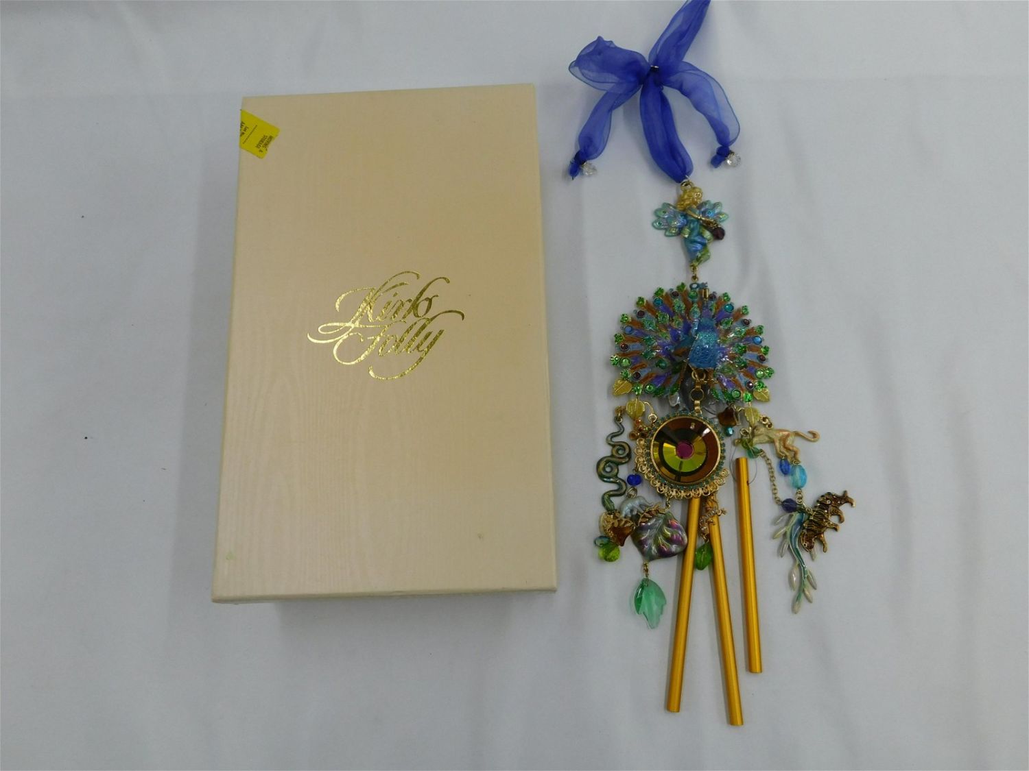 Kirks Folly Peacock Wind Chime in Enamel and Rhinestones. Measures 16" long. Comes in original box with paperwork. All invoices must be paid within 24 hours of the sale. All items are shipped USPS or UPS and will be billed separately. A $12 handling fee is added to the shipping price per lot if shipped in house. Some items or large quantity of purchases will be packed and shipped via the Monmouth Junction UPS store. Local pickups are at our Monmouth Junction location on Friday, Saturday and Monday ONLY! All pickups are by appointment only. Any condition issues will be listed in the description. Please read the terms for full information.