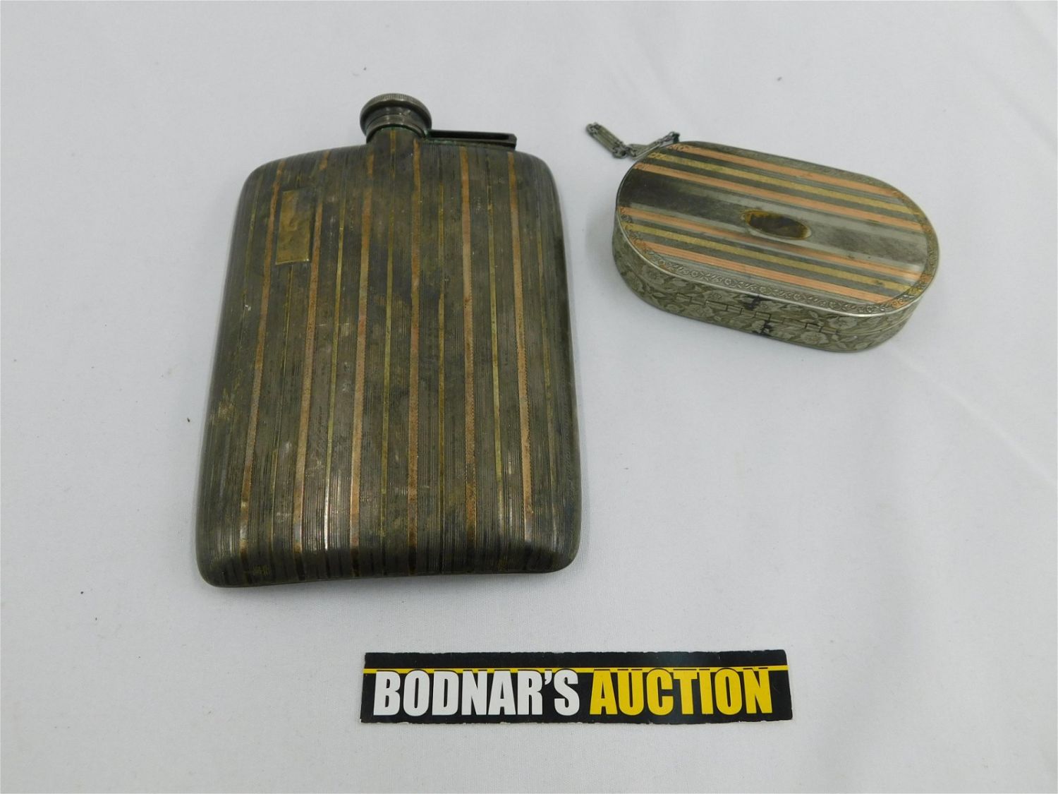 Lot of Miscellaneous Items including Vintage Elgin Whisky Flask – Sterling Silver with 14kt Inlay and Vintage Compact/Purse with Inlay. All invoices must be paid within 24 hours of the sale. All items are shipped USPS or UPS and will be billed separately. A $12 handling fee is added to the shipping price per lot if shipped in house. Some items or large quantity of purchases will be packed and shipped via the Monmouth Junction UPS store. Local pickups are at our Monmouth Junction location on Friday, Saturday and Monday ONLY! All pickups are by appointment only. Any condition issues will be listed in the description. Please read the terms for full information.
