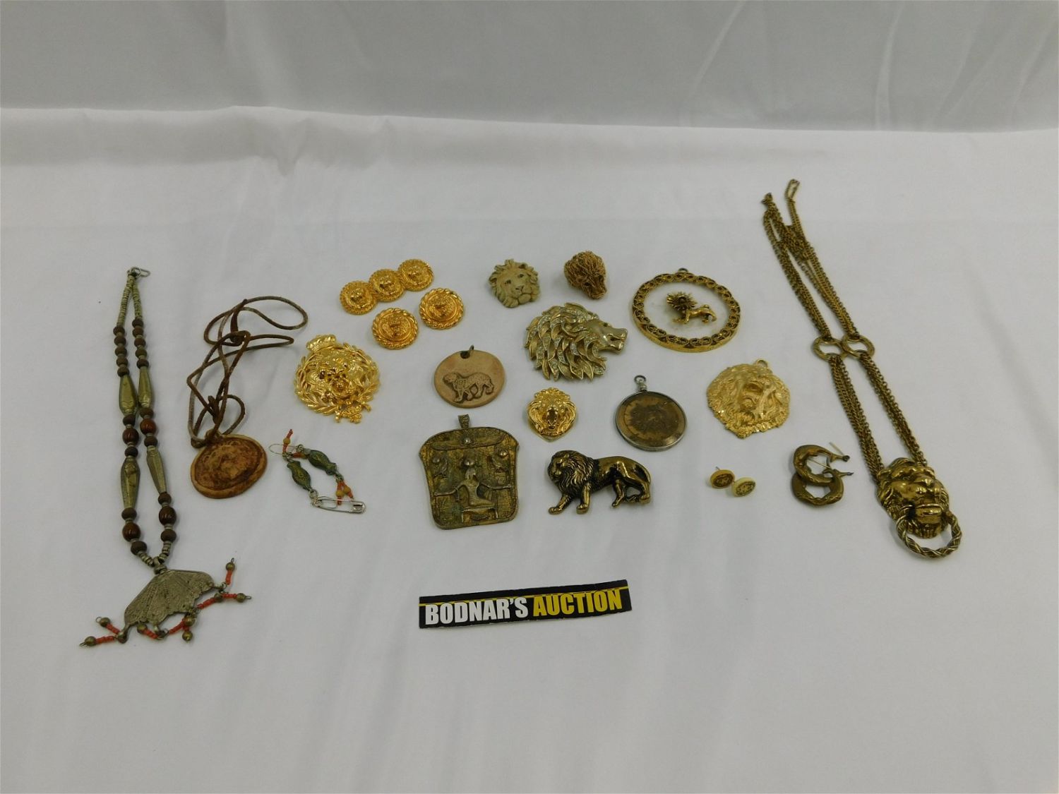 Lot of Gold Tone Lion Head Jewelry. Including Pins, Earrings, Pendants, Rings, and More. Some pieces are signed. All invoices must be paid within 24 hours of the sale. All items are shipped USPS or UPS and will be billed separately. A $12 handling fee is added to the shipping price per lot if shipped in house. Some items or large quantity of purchases will be packed and shipped via the Monmouth Junction UPS store. Local pickups are at our Monmouth Junction location on Friday, Saturday and Monday ONLY! All pickups are by appointment only. Any condition issues will be listed in the description. Please read the terms for full information.