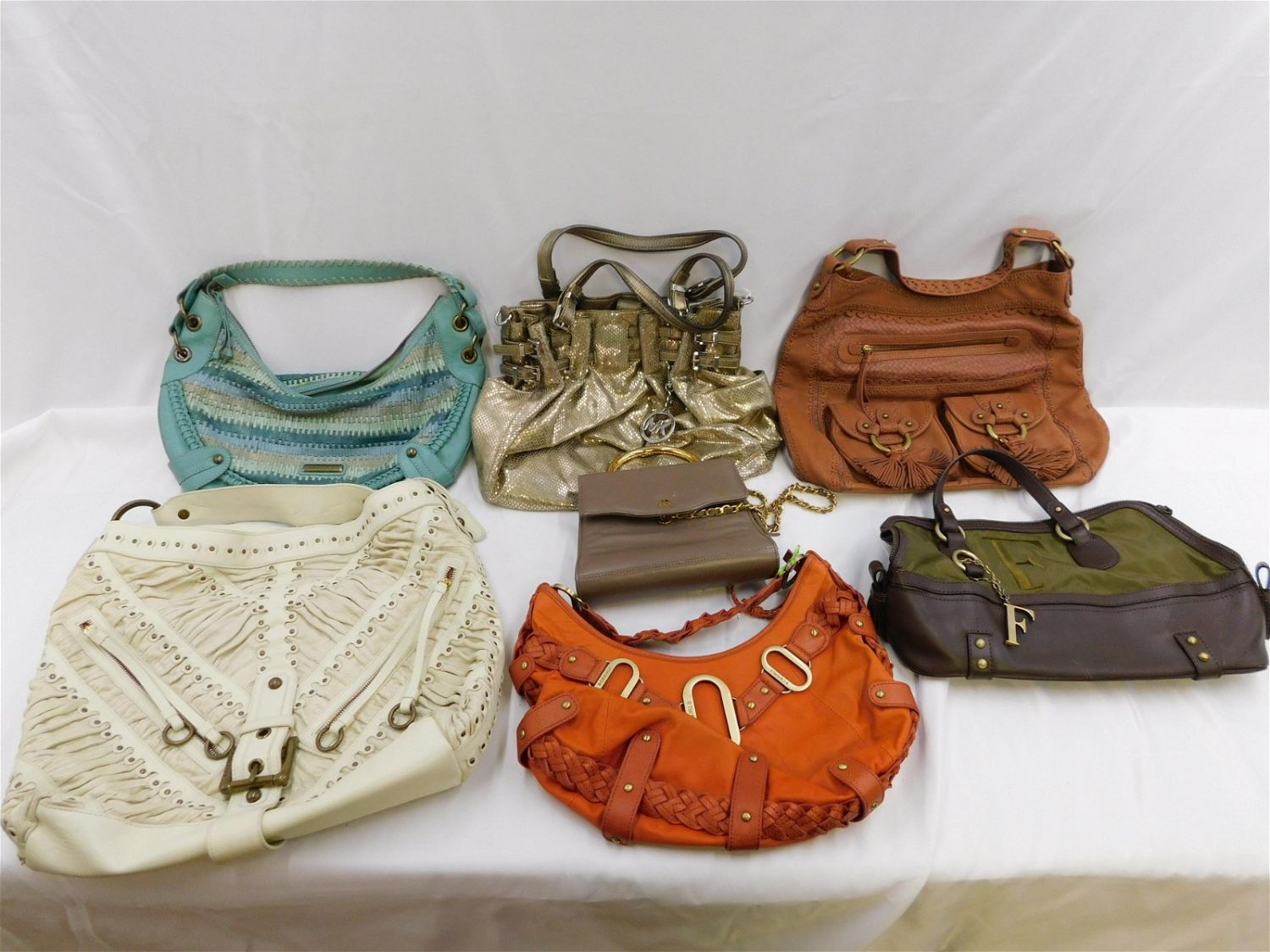 Lot of Purses including Leather Southwest Style Purses, Evening Bags, Michael Kohrs and More. All invoices must be paid within 24 hours of the sale. All items are shipped USPS or UPS and will be billed separately. A $12 handling fee is added to the shipping price per lot if shipped in house. Some items or large quantity of purchases will be packed and shipped via the Monmouth Junction UPS store. Local pickups are at our Monmouth Junction location on Friday, Saturday and Monday ONLY! All pickups are by appointment only. Any condition issues will be listed in the description. Please read the terms for full information.