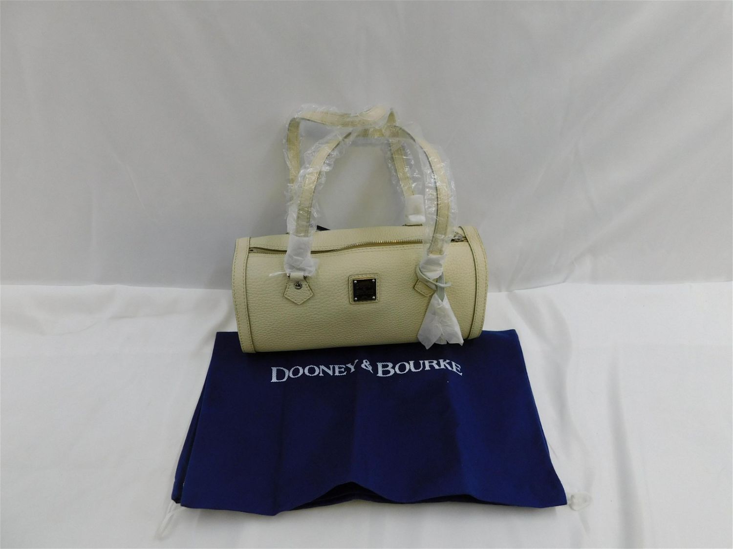 Dooney & Burke Bone Barrel Bag in Bone Leather. Includes Dustbag. Measures 11.5" wide x 14" to top of handles. New with Tags and Dooney and Burke Tissue Paper. Removed Purses from original sealed outer bags for photographing purposes. All invoices must be paid within 24 hours of the sale. All items are shipped USPS or UPS and will be billed separately. A $12 handling fee is added to the shipping price per lot if shipped in house. Some items or large quantity of purchases will be packed and shipped via the Monmouth Junction UPS store. Local pickups are at our Monmouth Junction location on Friday, Saturday and Monday ONLY! All pickups are by appointment only. Any condition issues will be listed in the description. Please read the terms for full information.