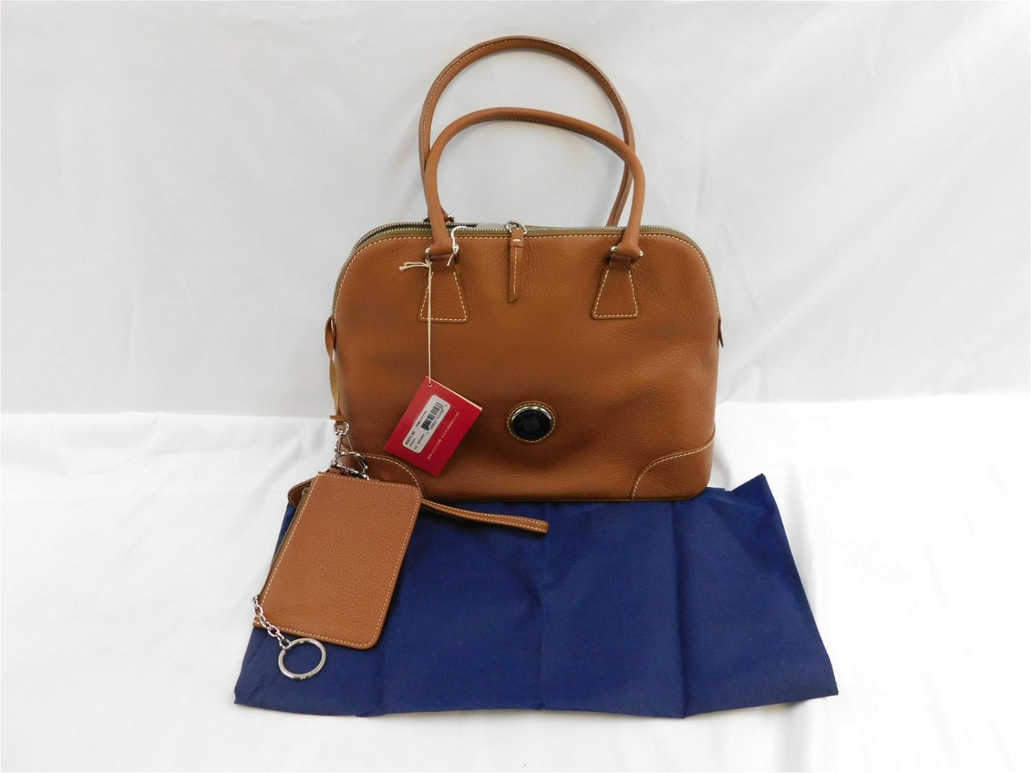 Dooney & Burke Saddle Domed Satchel. In Brown Leather. Includes Dustbag and Coin Purse. Measures 14" wide x 18.5" tall. New with Tags. Removed Purses from original sealed outer bags for photographing purposes. All invoices must be paid within 24 hours of the sale. All items are shipped USPS or UPS and will be billed separately. A $12 handling fee is added to the shipping price per lot if shipped in house. Some items or large quantity of purchases will be packed and shipped via the Monmouth Junction UPS store. Local pickups are at our Monmouth Junction location on Friday, Saturday and Monday ONLY! All pickups are by appointment only. Any condition issues will be listed in the description. Please read the terms for full information.