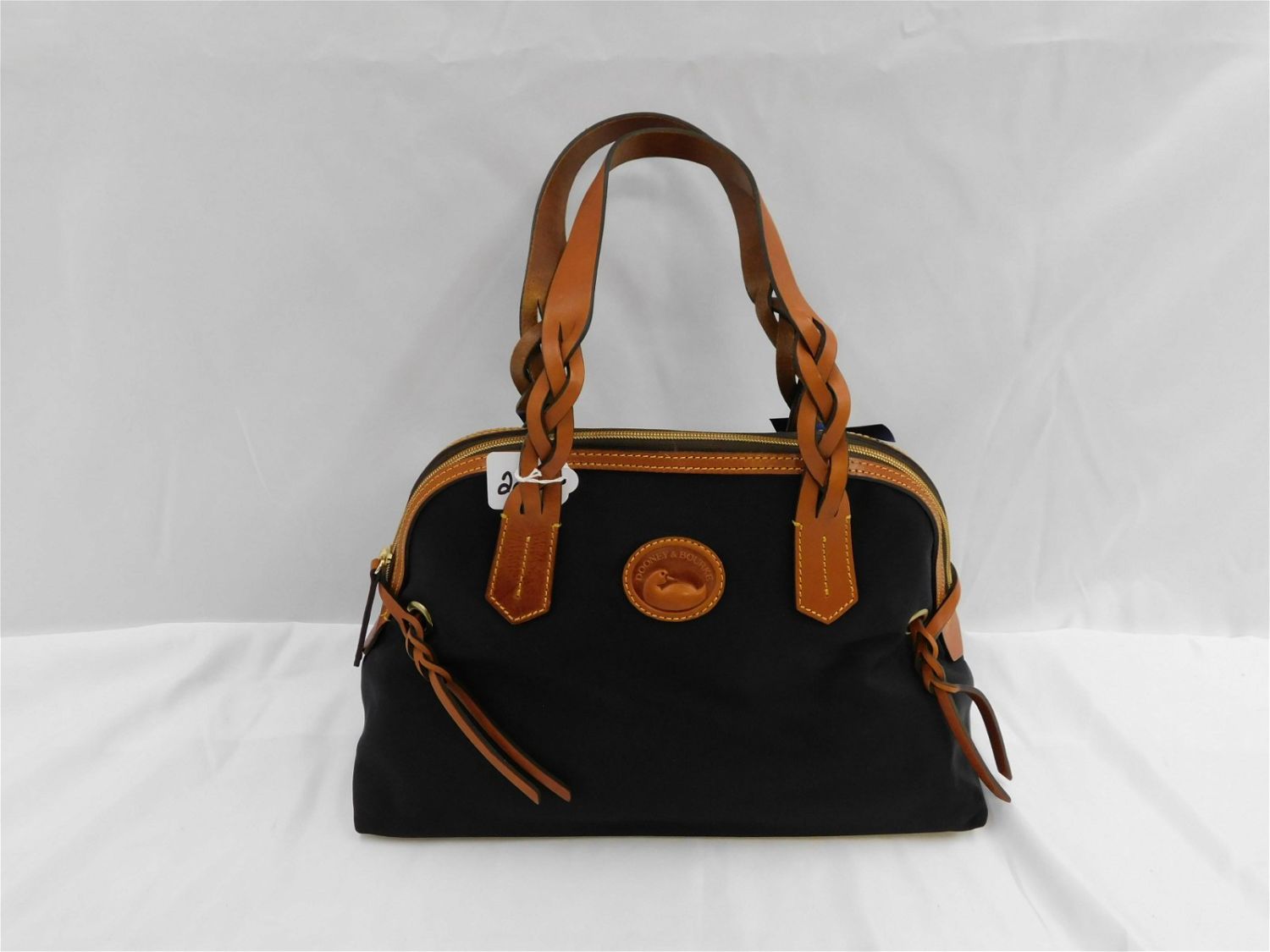 Dooney & Burke Small Domed Satchel in Black Cloth with Brown Leather Straps Accents. Measures 15" wide x 18" tall. New with Tags and Dooney and Burke Tissue Paper. Removed Purses from original sealed outer bags for photographing purposes. All invoices must be paid within 24 hours of the sale. All items are shipped USPS or UPS and will be billed separately. A $12 handling fee is added to the shipping price per lot if shipped in house. Some items or large quantity of purchases will be packed and shipped via the Monmouth Junction UPS store. Local pickups are at our Monmouth Junction location on Friday, Saturday and Monday ONLY! All pickups are by appointment only. Any condition issues will be listed in the description. Please read the terms for full information.