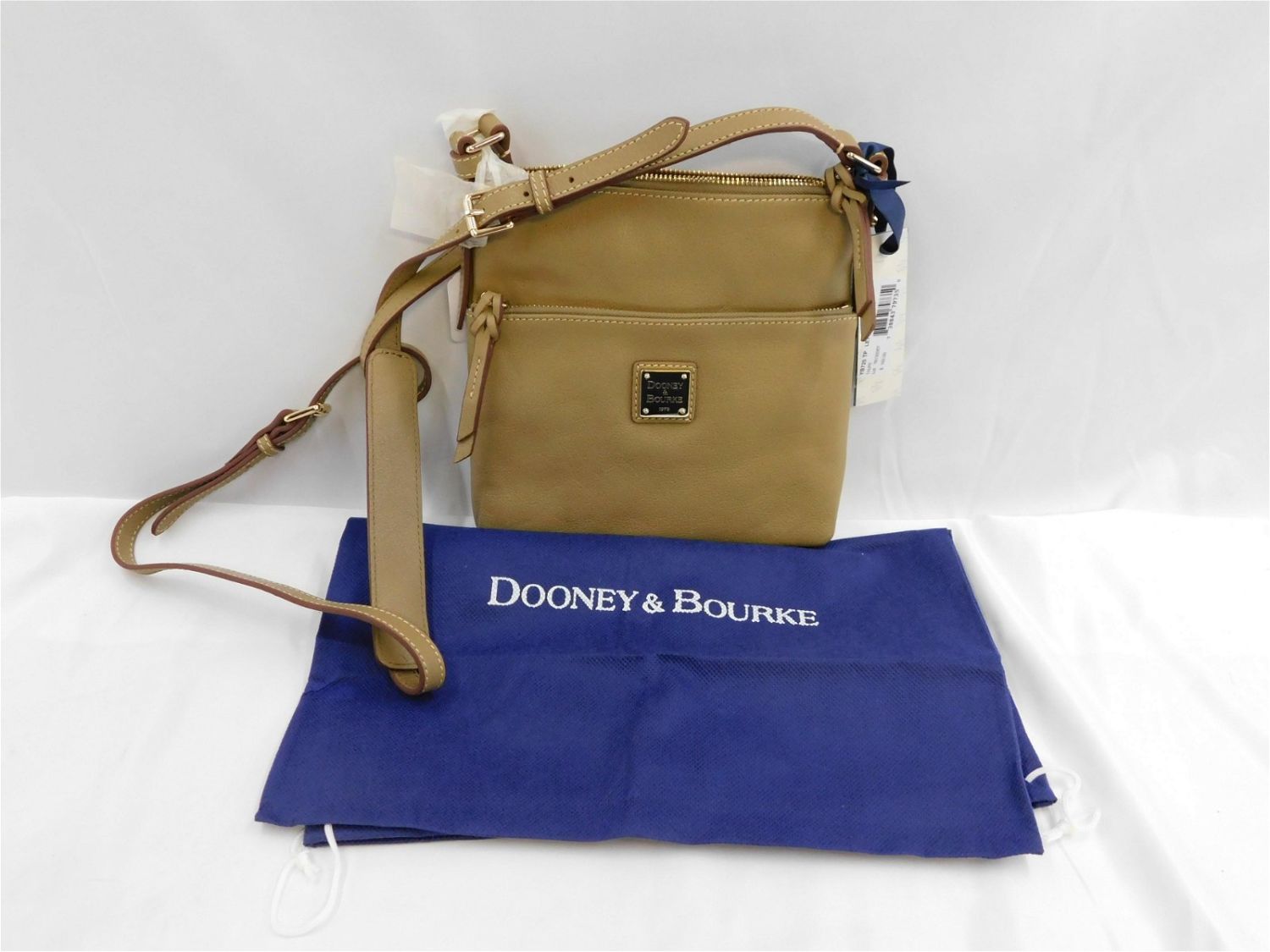 Dooney & Burke Taupe Letter Carrier. In Taupe Leather. Includes Dustbag. Measures 8.5" wide x 8.5" to top of bag. New with Tags and Dooney and Burke Tissue Paper. Removed Purses from original sealed outer bags for photographing purposes. All invoices must be paid within 24 hours of the sale. All items are shipped USPS or UPS and will be billed separately. A $12 handling fee is added to the shipping price per lot if shipped in house. Some items or large quantity of purchases will be packed and shipped via the Monmouth Junction UPS store. Local pickups are at our Monmouth Junction location on Friday, Saturday and Monday ONLY! All pickups are by appointment only. Any condition issues will be listed in the description. Please read the terms for full information.