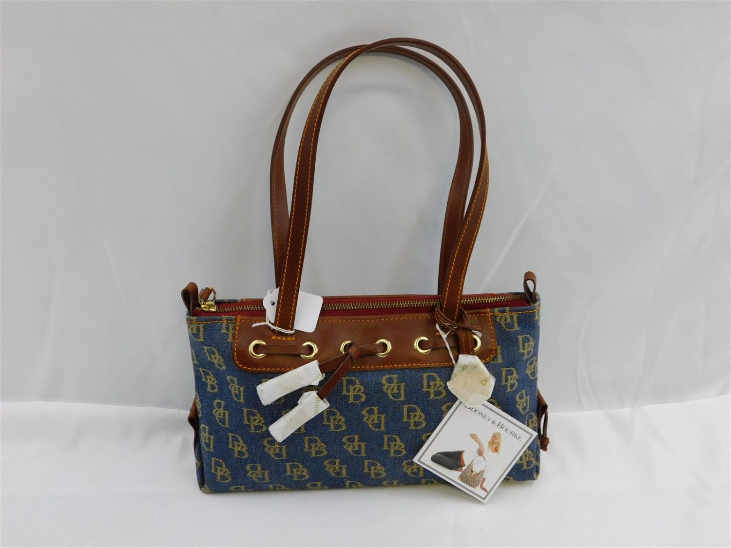Dooney & Burke Tassel Zip Top. In Blue Cloth with Brown Leather Strap and Accents. Measures 12" wide x 15.5" tall. New with Tags and Dooney and Burke Tissue Paper. Removed Purses from original sealed outer bags for photographing purposes. All invoices must be paid within 24 hours of the sale. All items are shipped USPS or UPS and will be billed separately. A $12 handling fee is added to the shipping price per lot if shipped in house. Some items or large quantity of purchases will be packed and shipped via the Monmouth Junction UPS store. Local pickups are at our Monmouth Junction location on Friday, Saturday and Monday ONLY! All pickups are by appointment only. Any condition issues will be listed in the description. Please read the terms for full information.