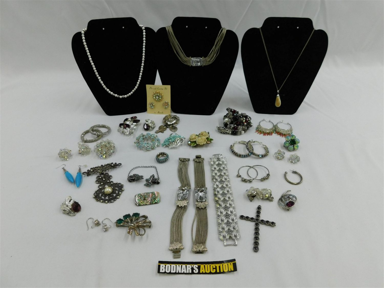 Lot of Vintage Silver Tone Costume Jewelry including Crystal Sets, Vintage Floral Sets, Unique Large Glass Stone Set and More. All invoices must be paid within 24 hours of the sale. All items are shipped USPS or UPS and will be billed separately. A $12 handling fee is added to the shipping price per lot if shipped in house. Some items or large quantity of purchases will be packed and shipped via the Monmouth Junction UPS store. Local pickups are at our Monmouth Junction location on Friday, Saturday and Monday ONLY! All pickups are by appointment only. Any condition issues will be listed in the description. Please read the terms for full information.