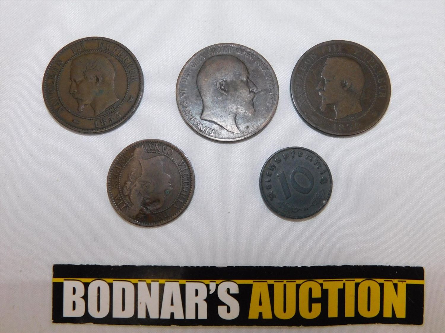 Lot of Early Coins including 2 Bronze Napoleon III Empereur, (10) Centimes 1854 and 1855, 1904 British 1 Penny, 1859 Canadian 1 Cent and 1941 10 Reichspennig. All invoices must be paid within 24 hours of the sale. All items are shipped USPS or UPS and will be billed separately. A $12 handling fee is added to the shipping price per lot if shipped in house. Some items or large quantity of purchases will be packed and shipped via the Monmouth Junction UPS store. Local pickups are at our Monmouth Junction location on Friday, Saturday and Monday ONLY! All pickups are by appointment only. Any condition issues will be listed in the description. Please read the terms for full information.