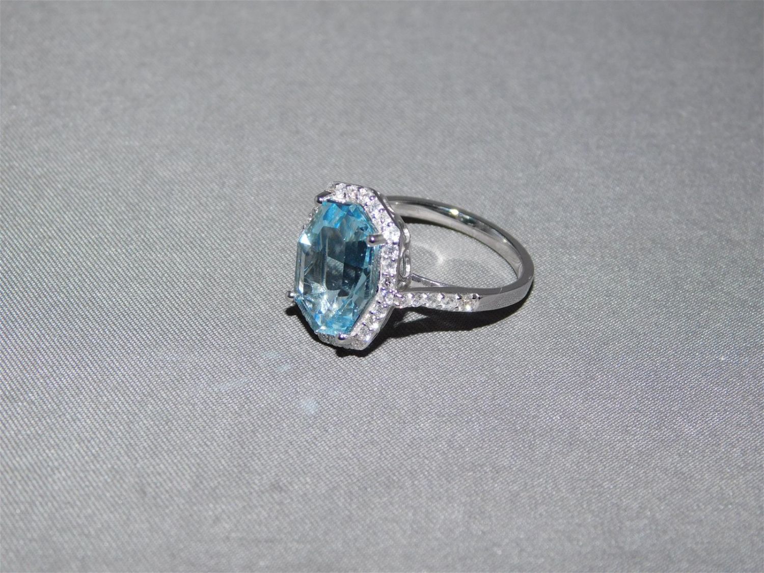 14K White Gold Aquamarine & Diamond Ring. Aquamarine weighs approx. 5.21 carats. Also has 38 Round Brilliant Cut Diamonds weighing .50 carats. Ring Size 6.75. Stamped Oscar Friedman. Comes with GAL Appraisal Report. All invoices must be paid within 24 hours of the sale. This auction is Local Pick Up, Shipping with Liveauctioneers Live Ship, In-House Shipping on small items only, or with the Local UPS Store in Monmouth Junction, NJ. Local pickups are at our Monmouth Junction location on Friday, Saturday and Monday ONLY! All pickups are by appointment only. Any condition issues will be listed in the description. Please read the terms for full information.