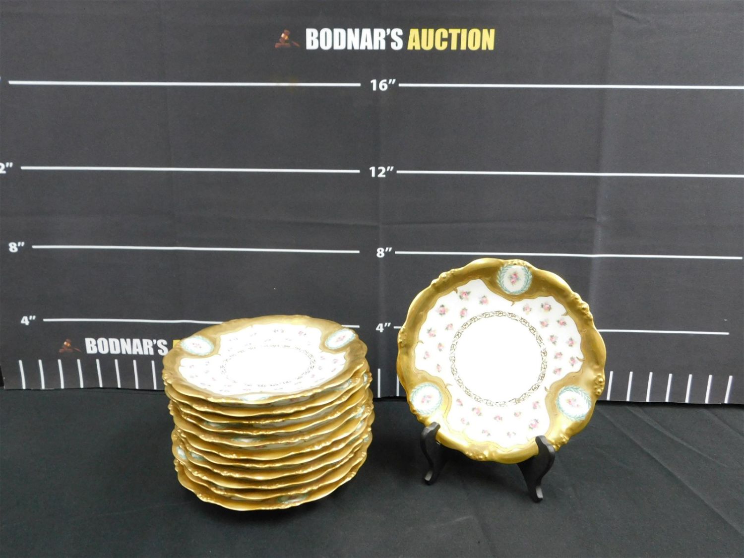 Set of 12 Hand Painted and Heavily Gold Gilded Elite Works Limoges France Dessert Plates. Some have wear but overall good condition. Measures 8.5" in diameter. All invoices must be paid within 24 hours of the sale. This auction is Local Pick Up, Shipping with Liveauctioneers Live Ship, In-House Shipping on small items only, or with the Local UPS Store in Monmouth Junction, NJ. Local pickups are at our Monmouth Junction location on Friday, Saturday and Monday ONLY! All pickups are by appointment only. Any condition issues will be listed in the description. Please read the terms for full information.