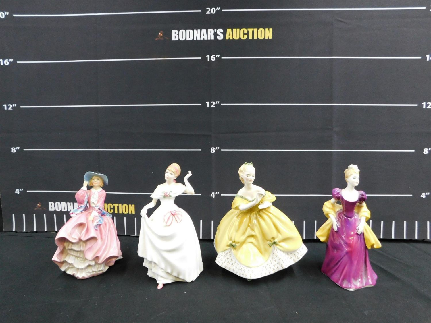 Lot of 4 Royal Doulton Lady Figurines including HN1849 Top O The Hill, HN2315 The Last Waltz, HN3600 Dawn, and HN2337 Loretta. Largest measures 8" tall x 7" wide. All invoices must be paid within 24 hours of the sale. This auction is Local Pick Up, Shipping with Liveauctioneers Live Ship, In-House Shipping on small items only, or with the Local UPS Store in Monmouth Junction, NJ. Local pickups are at our Monmouth Junction location on Friday, Saturday and Monday ONLY! All pickups are by appointment only. Any condition issues will be listed in the description. Please read the terms for full information.
