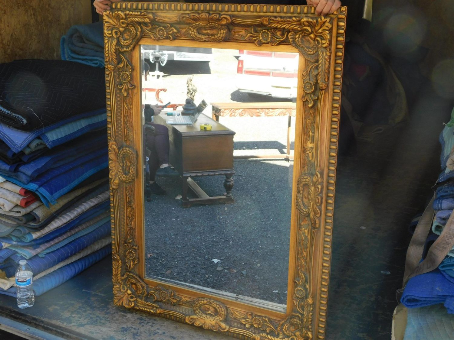 Plaster on Wood Gilded Beveled Glass Mirror. Measures 47" tall x 35" wide x 3" deep. All invoices must be paid within 24 hours of the sale. This auction is Local Pick Up, Shipping with Liveauctioneers Live Ship, In-House Shipping on small items only, or with the Local UPS Store in Monmouth Junction, NJ. Local pickups are at our Monmouth Junction location on Friday, Saturday and Monday ONLY! All pickups are by appointment only. Any condition issues will be listed in the description. Please read the terms for full information.