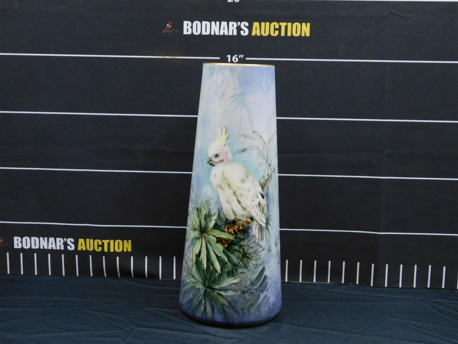 Monumental Willets Belleek Hand Painted Tall Vase depicting a Cockatoo in a Forest. Artist Signed. Measures 15.5" tall x 6.5" wide. All invoices must be paid within 24 hours of the sale. This auction is Local Pick Up, Shipping with Liveauctioneers Live Ship, In-House Shipping on small items only, or with the Local UPS Store in Monmouth Junction, NJ. Local pickups are at our Monmouth Junction location on Friday, Saturday and Monday ONLY! All pickups are by appointment only. Any condition issues will be listed in the description. Please read the terms for full information.