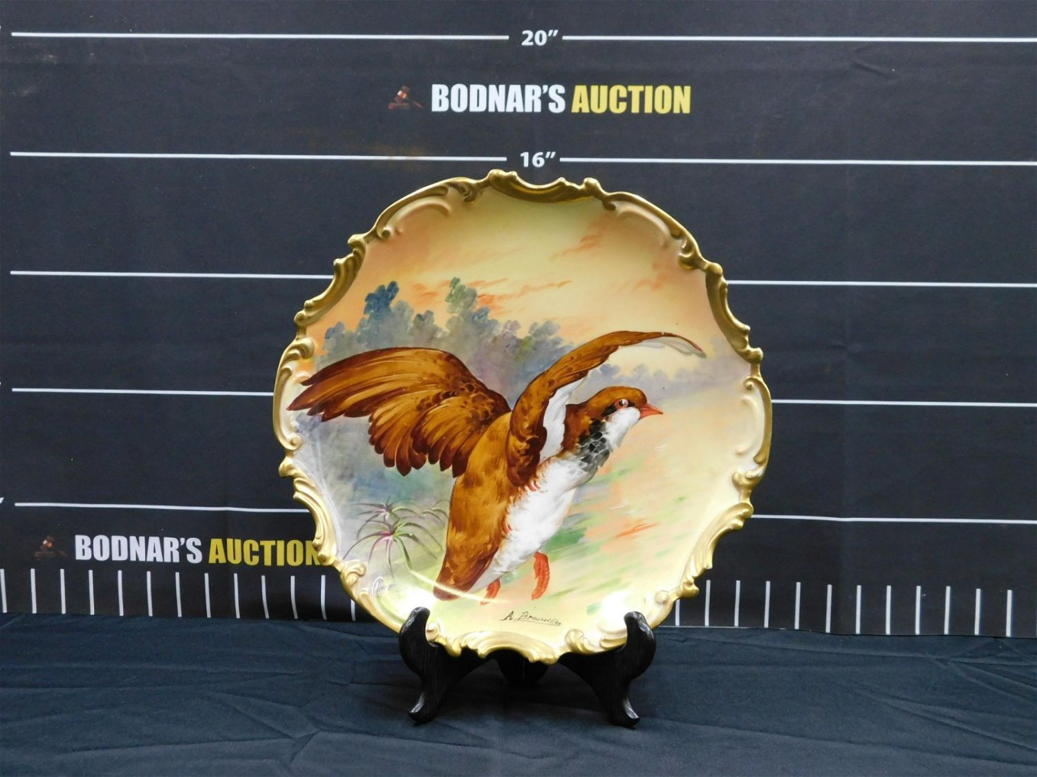 Limoges 19th Century Hand Painted Portrait Plate – Made in France. Depicting a Bird in Flight. Artist Signed A. Brussilloy. Marked on Back Limoges France Coronet. Measures 13" in diameter. All invoices must be paid within 24 hours of the sale. This auction is Local Pick Up, Shipping with Liveauctioneers Live Ship, In-House Shipping on small items only, or with the Local UPS Store in Monmouth Junction, NJ. Local pickups are at our Monmouth Junction location on Friday, Saturday and Monday ONLY! All pickups are by appointment only. Any condition issues will be listed in the description. Please read the terms for full information.