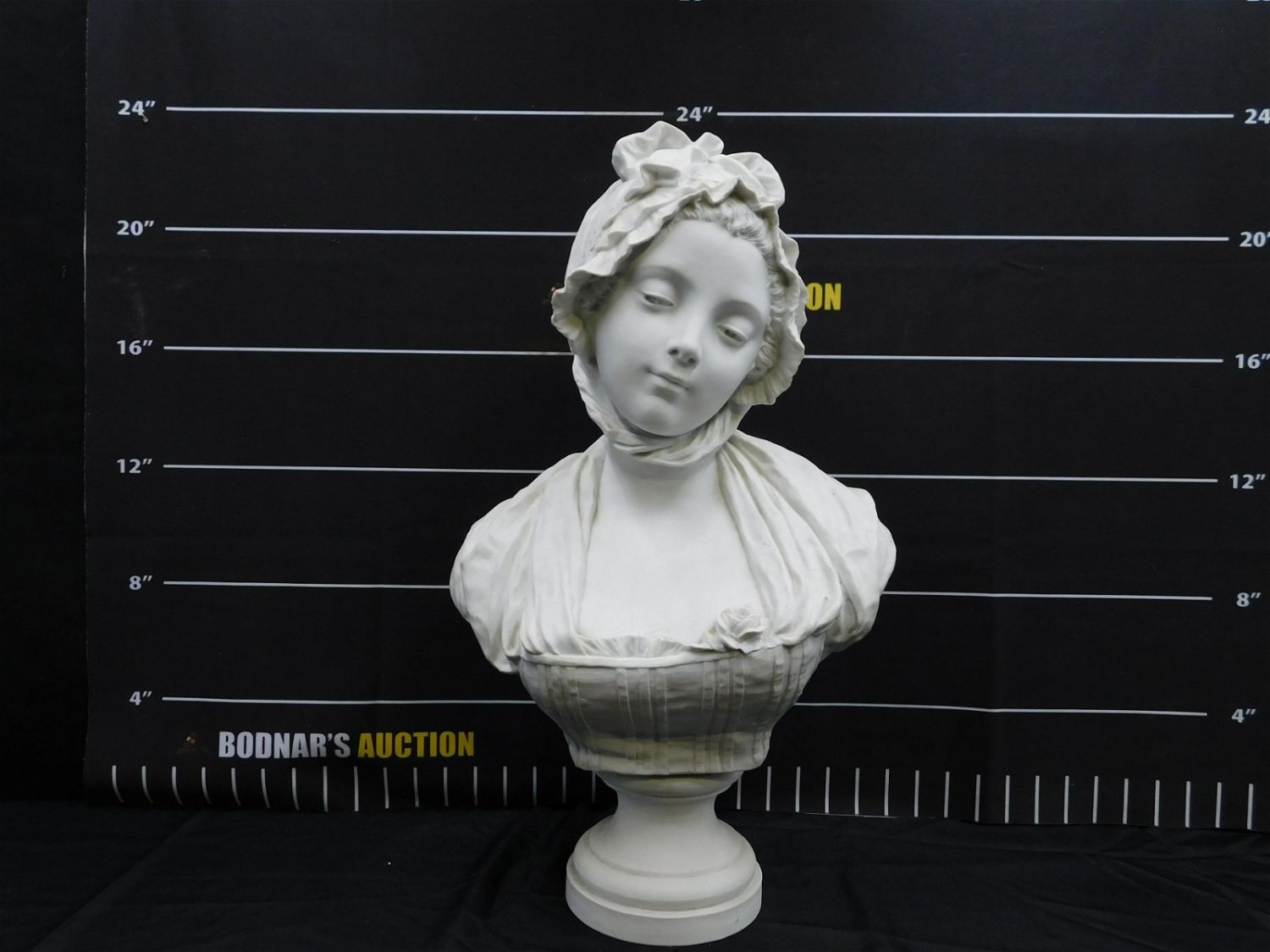19th Century Old Paris Style/Parian Bust of a Woman. Signed in Glaze – G. Levy. Has blue stamp mark on bottom. Measures 22.5" tall x 12.5" wide. All invoices must be paid within 24 hours of the sale. This auction is Local Pick Up, Shipping with Liveauctioneers Live Ship, In-House Shipping on small items only, or with the Local UPS Store in Monmouth Junction, NJ. Local pickups are at our Monmouth Junction location on Friday, Saturday and Monday ONLY! All pickups are by appointment only. Any condition issues will be listed in the description. Please read the terms for full information.