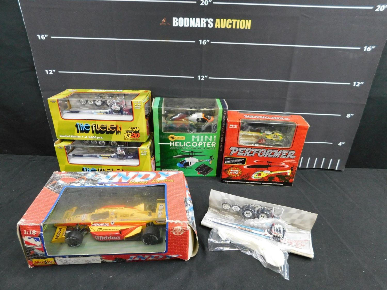 Lot of Diecast Cars, Model Kits, and RC Helicopters. Lot includes (2) The Fuelers 1:24 Scale Tom McEwen Model Kits, Indy Menards 1:18 Scale Vehicle, and More. Please read the terms and conditions. This sale will be broadcast live on sale day with full descriptions of each lot being sold. All items MUST be paid for within 24 HOURS of the sale. Anyone who has not paid within 24 hours will have a dispute opened against them and will not be able to bid at future sales. This auction is Local Pick Up, Shipping with Liveauctioneers Live Ship, In-House Shipping on small items only, or with the Local UPS Store in Monmouth Junction, NJ. Please call them to get a quote before bidding. Their phone number is 732-230-3551. If you are picking your items up you must contact us NO LATER than 24 hours after the sale to schedule an appointment to pick up. Pick up dates are Thursday, Friday, Saturday, and Monday ONLY, and are BY APPOINTMENT ONLY!! After Monday, if you have not picked up your items, they will be disposed of.