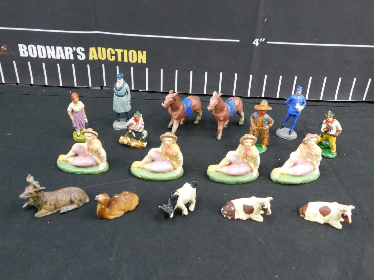 Lot of Vintage Composition and Lead Figures including People and Animals. Most marked Japan on the bottom of the base. Please read the terms and conditions. This sale will be broadcast live on sale day with full descriptions of each lot being sold. All items MUST be paid for within 24 HOURS of the sale. Anyone who has not paid within 24 hours will have a dispute opened against them and will not be able to bid at future sales. This auction is Local Pick Up, Shipping with Liveauctioneers Live Ship, In-House Shipping on small items only, or with the Local UPS Store in Monmouth Junction, NJ. Please call them to get a quote before bidding. Their phone number is 732-230-3551. If you are picking your items up you must contact us NO LATER than 24 hours after the sale to schedule an appointment to pick up. Pick up dates are Thursday, Friday, Saturday, and Monday ONLY, and are BY APPOINTMENT ONLY!! After Monday, if you have not picked up your items, they will be disposed of.