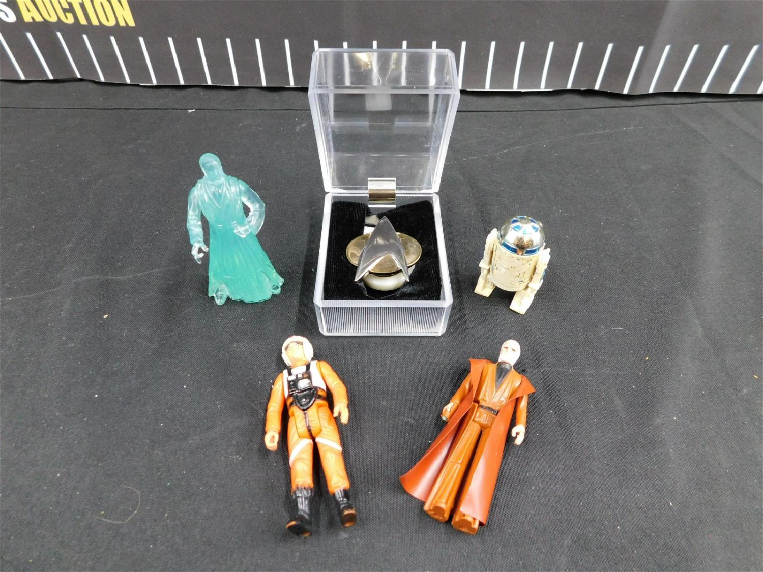 Mixed Lot of Star Wars and Star Trek including Kenner 1977 Obi-Wan Kenobi, Kenner 1977 Luke Skywalker X-Wing Pilot, R2-D2, 1997 Mail Away Holographic Obi-Wan, and Star Trek Communicator Pin. Please read the terms and conditions. This sale will be broadcast live on sale day with full descriptions of each lot being sold. All items MUST be paid for within 24 HOURS of the sale. Anyone who has not paid within 24 hours will have a dispute opened against them and will not be able to bid at future sales. This auction is Local Pick Up, Shipping with Liveauctioneers Live Ship, In-House Shipping on small items only, or with the Local UPS Store in Monmouth Junction, NJ. Please call them to get a quote before bidding. Their phone number is 732-230-3551. If you are picking your items up you must contact us NO LATER than 24 hours after the sale to schedule an appointment to pick up. Pick up dates are Thursday, Friday, Saturday, and Monday ONLY, and are BY APPOINTMENT ONLY!! After Monday, if you have not picked up your items, they will be disposed of.