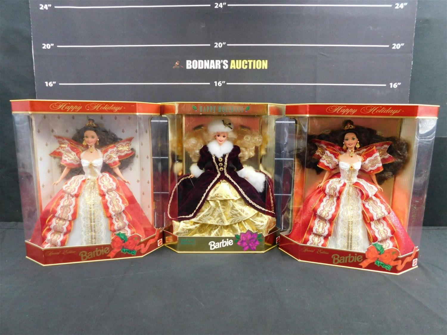 Lot of 3 Mattel Happy Holidays Barbie Dolls including 1996 and (2) 1997. All come in original packages. Please read the terms and conditions. This sale will be broadcast live on sale day with full descriptions of each lot being sold. All items MUST be paid for within 24 HOURS of the sale. Anyone who has not paid within 24 hours will have a dispute opened against them and will not be able to bid at future sales. This auction is Local Pick Up, Shipping with Liveauctioneers Live Ship, In-House Shipping on small items only, or with the Local UPS Store in Monmouth Junction, NJ. Please call them to get a quote before bidding. Their phone number is 732-230-3551. If you are picking your items up you must contact us NO LATER than 24 hours after the sale to schedule an appointment to pick up. Pick up dates are Thursday, Friday, Saturday, and Monday ONLY, and are BY APPOINTMENT ONLY!! After Monday, if you have not picked up your items, they will be disposed of.
