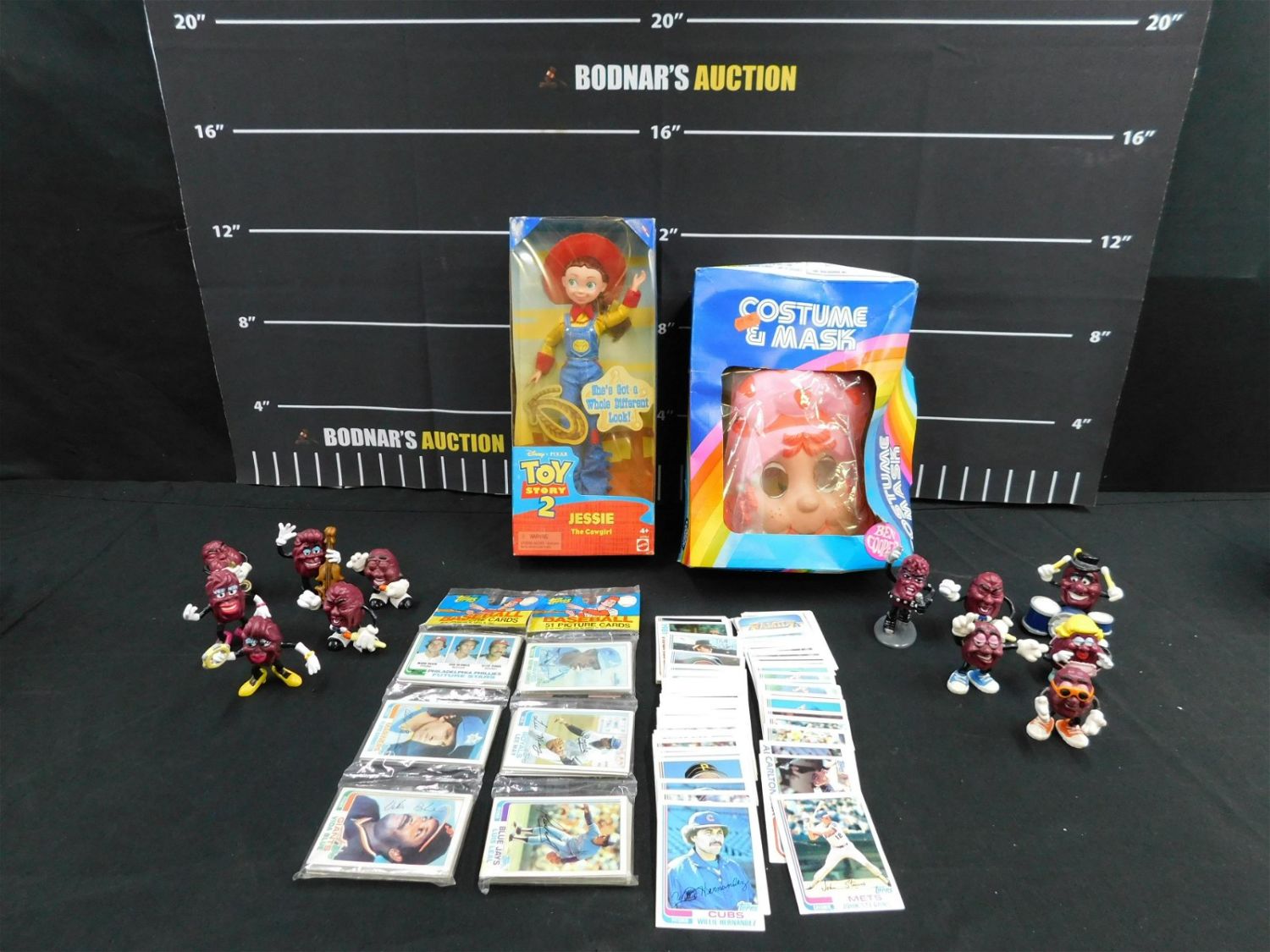 Mixed Lot of Toys and Collectibles including Toy Story 2 Jesse Doll by Mattel, Ben Cooper Strawberry Shortcake Mask, California Raisins, and Sports Cards. Please read the terms and conditions. This sale will be broadcast live on sale day with full descriptions of each lot being sold. All items MUST be paid for within 24 HOURS of the sale. Anyone who has not paid within 24 hours will have a dispute opened against them and will not be able to bid at future sales. This auction is Local Pick Up, Shipping with Liveauctioneers Live Ship, In-House Shipping on small items only, or with the Local UPS Store in Monmouth Junction, NJ. Please call them to get a quote before bidding. Their phone number is 732-230-3551. If you are picking your items up you must contact us NO LATER than 24 hours after the sale to schedule an appointment to pick up. Pick up dates are Thursday, Friday, Saturday, and Monday ONLY, and are BY APPOINTMENT ONLY!! After Monday, if you have not picked up your items, they will be disposed of.