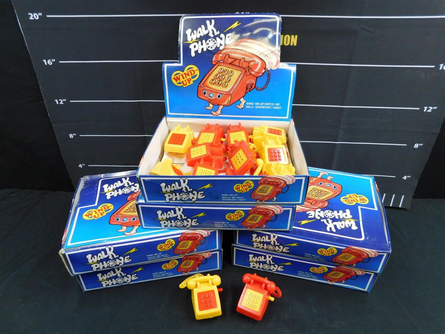 Lot of 6 Tabletop Cases containing 12 Each of Walk Phone Wind Up Telephone Toy. #303D. Made in Hong Kong. Please read the terms and conditions. This sale will be broadcast live on sale day with full descriptions of each lot being sold. All items MUST be paid for within 24 HOURS of the sale. Anyone who has not paid within 24 hours will have a dispute opened against them and will not be able to bid at future sales. This auction is Local Pick Up, Shipping with Liveauctioneers Live Ship, In-House Shipping on small items only, or with the Local UPS Store in Monmouth Junction, NJ. Please call them to get a quote before bidding. Their phone number is 732-230-3551. If you are picking your items up you must contact us NO LATER than 24 hours after the sale to schedule an appointment to pick up. Pick up dates are Thursday, Friday, Saturday, and Monday ONLY, and are BY APPOINTMENT ONLY!! After Monday, if you have not picked up your items, they will be disposed of.