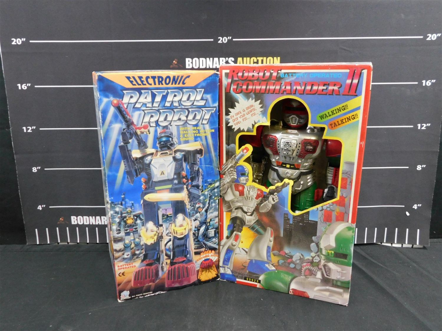 Lot of 2 Battery Operated Toys including Robot Commander 2 and Electronic Patrol Robot. Both are in Box. Please read the terms and conditions. This sale will be broadcast live on sale day with full descriptions of each lot being sold. All items MUST be paid for within 24 HOURS of the sale. Anyone who has not paid within 24 hours will have a dispute opened against them and will not be able to bid at future sales. This auction is Local Pick Up, Shipping with Liveauctioneers Live Ship, In-House Shipping on small items only, or with the Local UPS Store in Monmouth Junction, NJ. Please call them to get a quote before bidding. Their phone number is 732-230-3551. If you are picking your items up you must contact us NO LATER than 24 hours after the sale to schedule an appointment to pick up. Pick up dates are Thursday, Friday, Saturday, and Monday ONLY, and are BY APPOINTMENT ONLY!! After Monday, if you have not picked up your items, they will be disposed of.