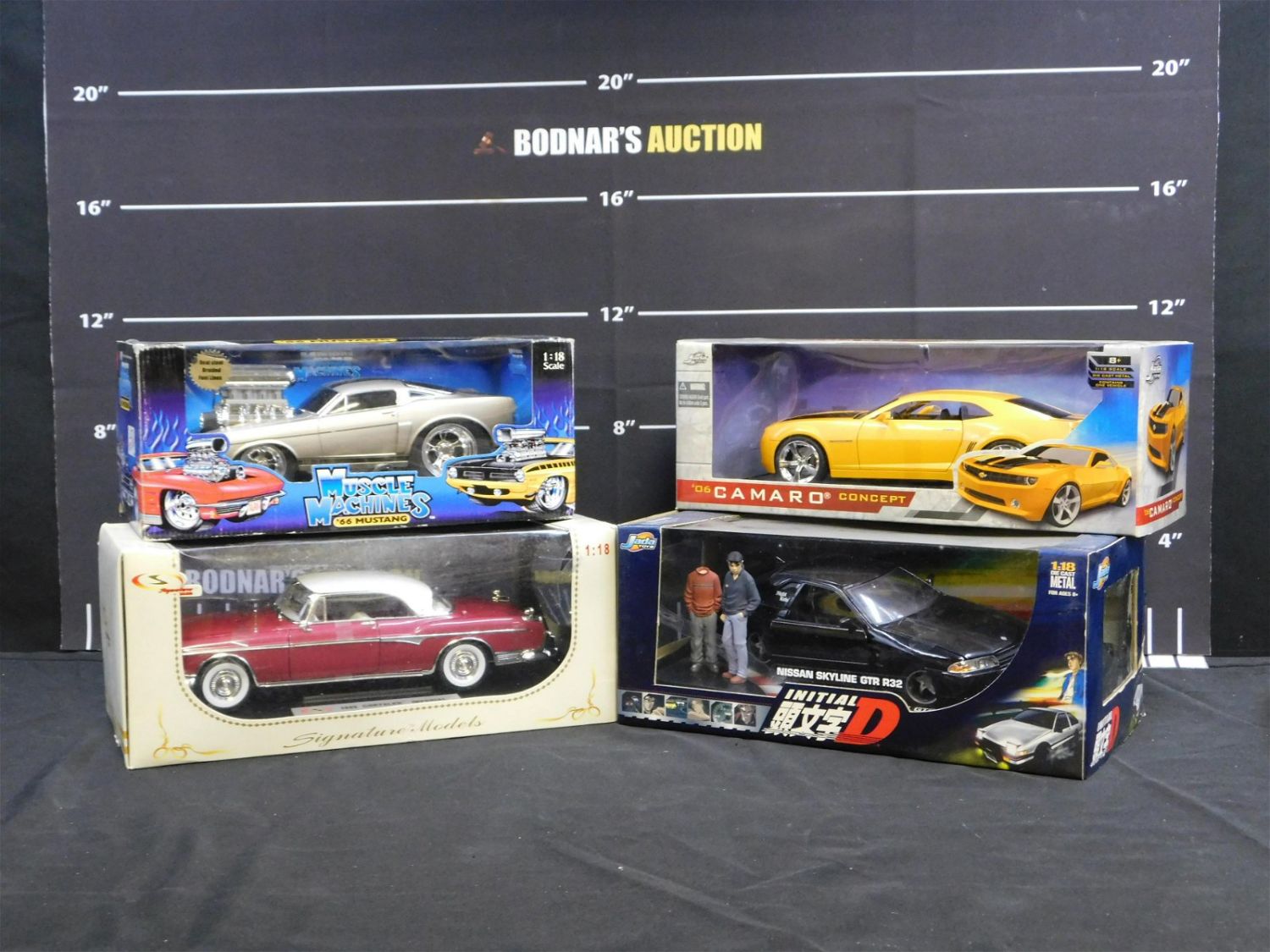 Lot of 4 AS-IS Diecast Cars 1:18 Scale including Muscle Machines ’66 Mustang – Air bubbles in paint, Signature Models – 1955 Chrysler Imperial – Imperial on slant, Jada 2006 Chevy Camaro Concept – Paint rub on rear view mirror, and Jada Toys Initial D Nissan Skyliner GTR R32 – Figure inside is missing his head. All come in original boxes. Please read the terms and conditions. This sale will be broadcast live on sale day with full descriptions of each lot being sold. All items MUST be paid for within 24 HOURS of the sale. Anyone who has not paid within 24 hours will have a dispute opened against them and will not be able to bid at future sales. This auction is Local Pick Up, Shipping with Liveauctioneers Live Ship, In-House Shipping on small items only, or with the Local UPS Store in Monmouth Junction, NJ. Please call them to get a quote before bidding. Their phone number is 732-230-3551. If you are picking your items up you must contact us NO LATER than 24 hours after the sale to schedule an appointment to pick up. Pick up dates are Thursday, Friday, Saturday, and Monday ONLY, and are BY APPOINTMENT ONLY!! After Monday, if you have not picked up your items, they will be disposed of.