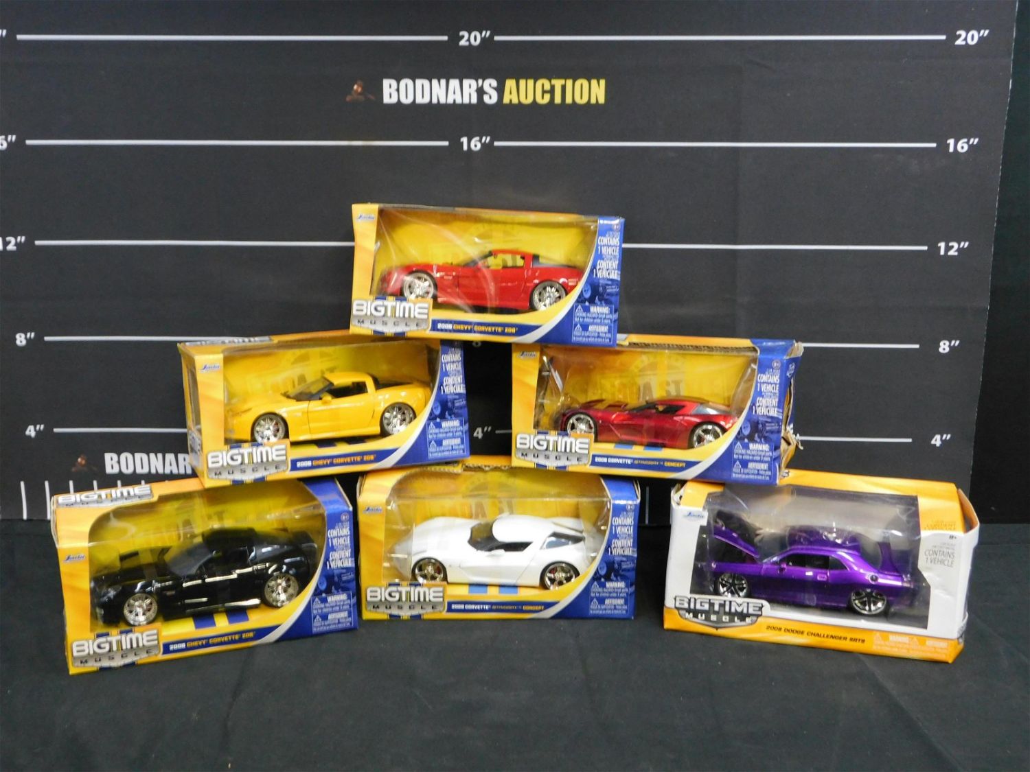 Lot of 6 Jada Big Time Muscle 1:24 Scale Diecast Cars including (3) 2006 Chevy Corvette Z06 – Red, Black and Yellow, (2) 2009 Corvette Stingray Concept – Red and White, and 2008 Dodge Challenger. All come in original boxes. Some boxes have heavier wear. Please read the terms and conditions. This sale will be broadcast live on sale day with full descriptions of each lot being sold. All items MUST be paid for within 24 HOURS of the sale. Anyone who has not paid within 24 hours will have a dispute opened against them and will not be able to bid at future sales. This auction is Local Pick Up, Shipping with Liveauctioneers Live Ship, In-House Shipping on small items only, or with the Local UPS Store in Monmouth Junction, NJ. Please call them to get a quote before bidding. Their phone number is 732-230-3551. If you are picking your items up you must contact us NO LATER than 24 hours after the sale to schedule an appointment to pick up. Pick up dates are Thursday, Friday, Saturday, and Monday ONLY, and are BY APPOINTMENT ONLY!! After Monday, if you have not picked up your items, they will be disposed of.