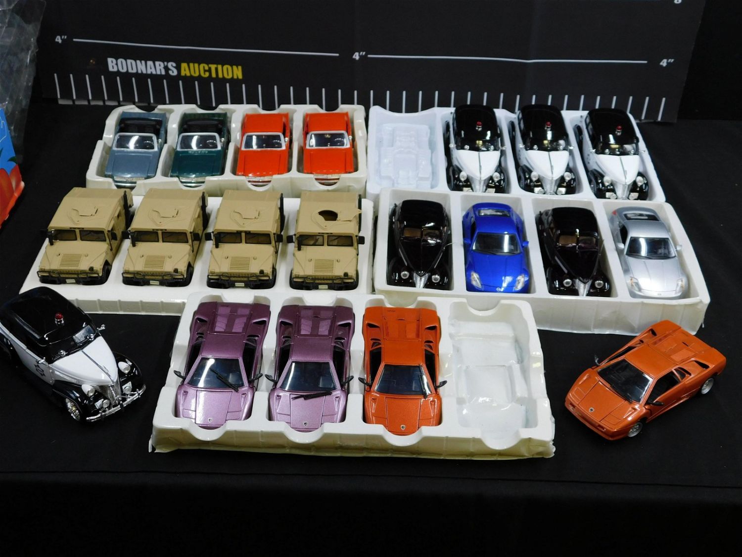 Lot of 20 Mixed Brands 1:24 Scale Diecast including (4) Maisto Humvee, (4) Lamborghini Diablo, (2) Maisto Nissan 350Z, (2) 1939 Chevrolet Coupe, (4) 1964 Mustang, and (4) Jada 1939 Chevrolet Master Deluxe. No display boxes are included. Please read the terms and conditions. This sale will be broadcast live on sale day with full descriptions of each lot being sold. All items MUST be paid for within 24 HOURS of the sale. Anyone who has not paid within 24 hours will have a dispute opened against them and will not be able to bid at future sales. This auction is Local Pick Up, Shipping with Liveauctioneers Live Ship, In-House Shipping on small items only, or with the Local UPS Store in Monmouth Junction, NJ. Please call them to get a quote before bidding. Their phone number is 732-230-3551. If you are picking your items up you must contact us NO LATER than 24 hours after the sale to schedule an appointment to pick up. Pick up dates are Thursday, Friday, Saturday, and Monday ONLY, and are BY APPOINTMENT ONLY!! After Monday, if you have not picked up your items, they will be disposed of.
