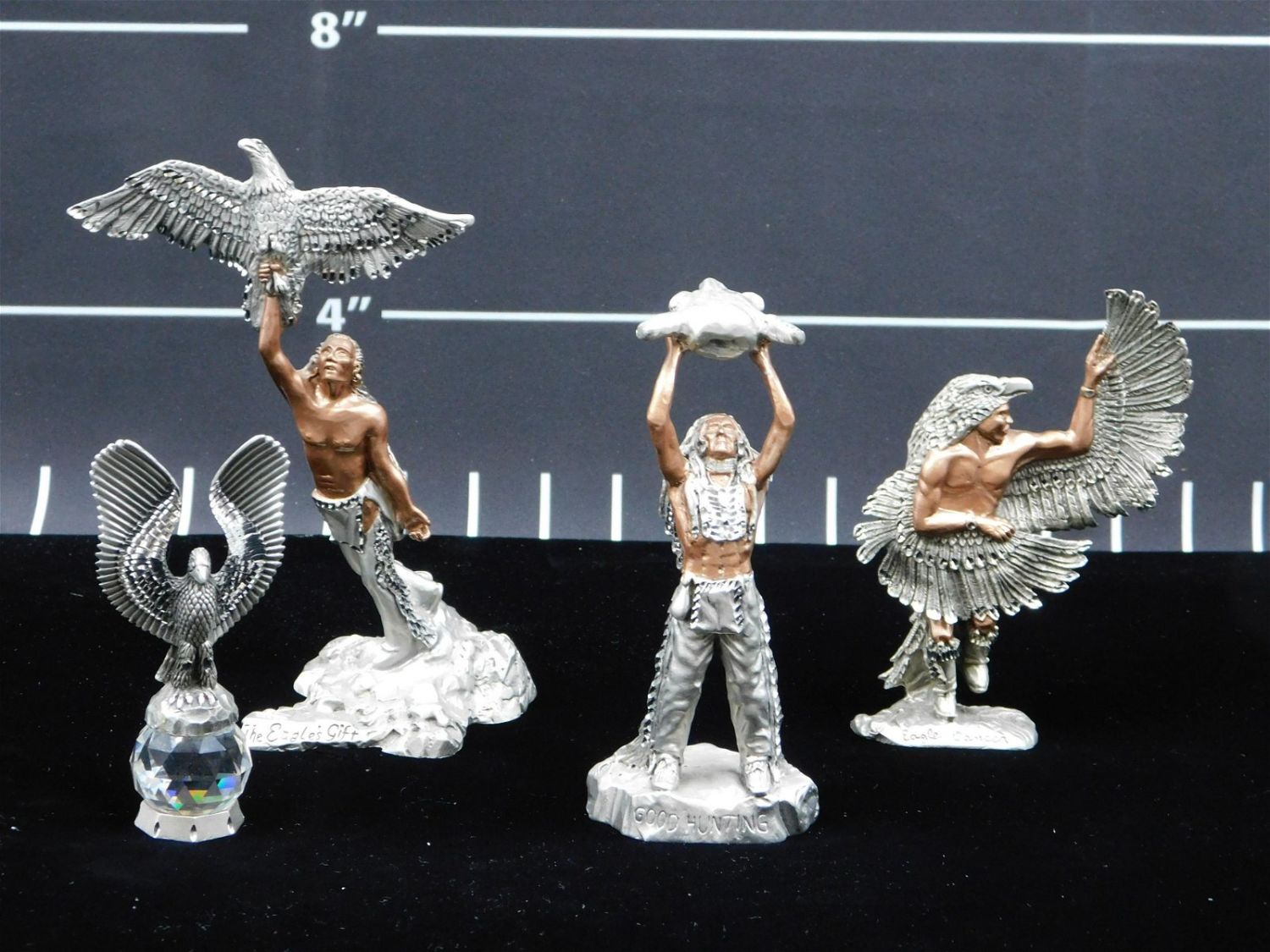 Lot of 4 Masterworks Fine Pewter Figurines – Native American Themed Figures. Measures 4" – 6.5" tall. All invoices must be paid within 24 hours of the sale. This auction is Local Pick Up, Shipping with Liveauctioneers Live Ship or with the Local UPS Store in Monmouth Junction, NJ. Local pickups are at our Monmouth Junction location on Friday, Saturday and Monday ONLY! All pickups are by appointment only. Any condition issues will be listed in the description. Please read the terms for full information.