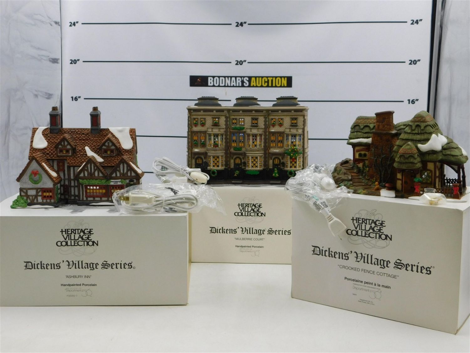Lot of 3 Dept. 56 Dicken Village including Mulberrie Court, Ashbury Inn, and The Crooked Fence Cottage. Comes in Original Packaging. All invoices must be paid within 24 hours of the sale. This auction is Local Pick Up, Shipping with Liveauctioneers Live Ship or with the Local UPS Store in Monmouth Junction, NJ. Local pickups are at our Monmouth Junction location on Friday, Saturday and Monday ONLY! All pickups are by appointment only. Any condition issues will be listed in the description. Please read the terms for full information.