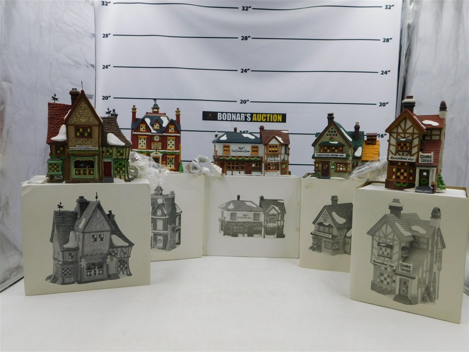 Lot of 5 Dept. 56 Dickens Village including Nettie Quinn Puppets and Marionettes, The Old Curiosity Shop, Boarding & Lodging School, Giggelswick Mutton & Ham, and Bumpstead N.Y.E. Cloaks & Canes. Comes in Original Packaging. All invoices must be paid within 24 hours of the sale. This auction is Local Pick Up, Shipping with Liveauctioneers Live Ship or with the Local UPS Store in Monmouth Junction, NJ. Local pickups are at our Monmouth Junction location on Friday, Saturday and Monday ONLY! All pickups are by appointment only. Any condition issues will be listed in the description. Please read the terms for full information.