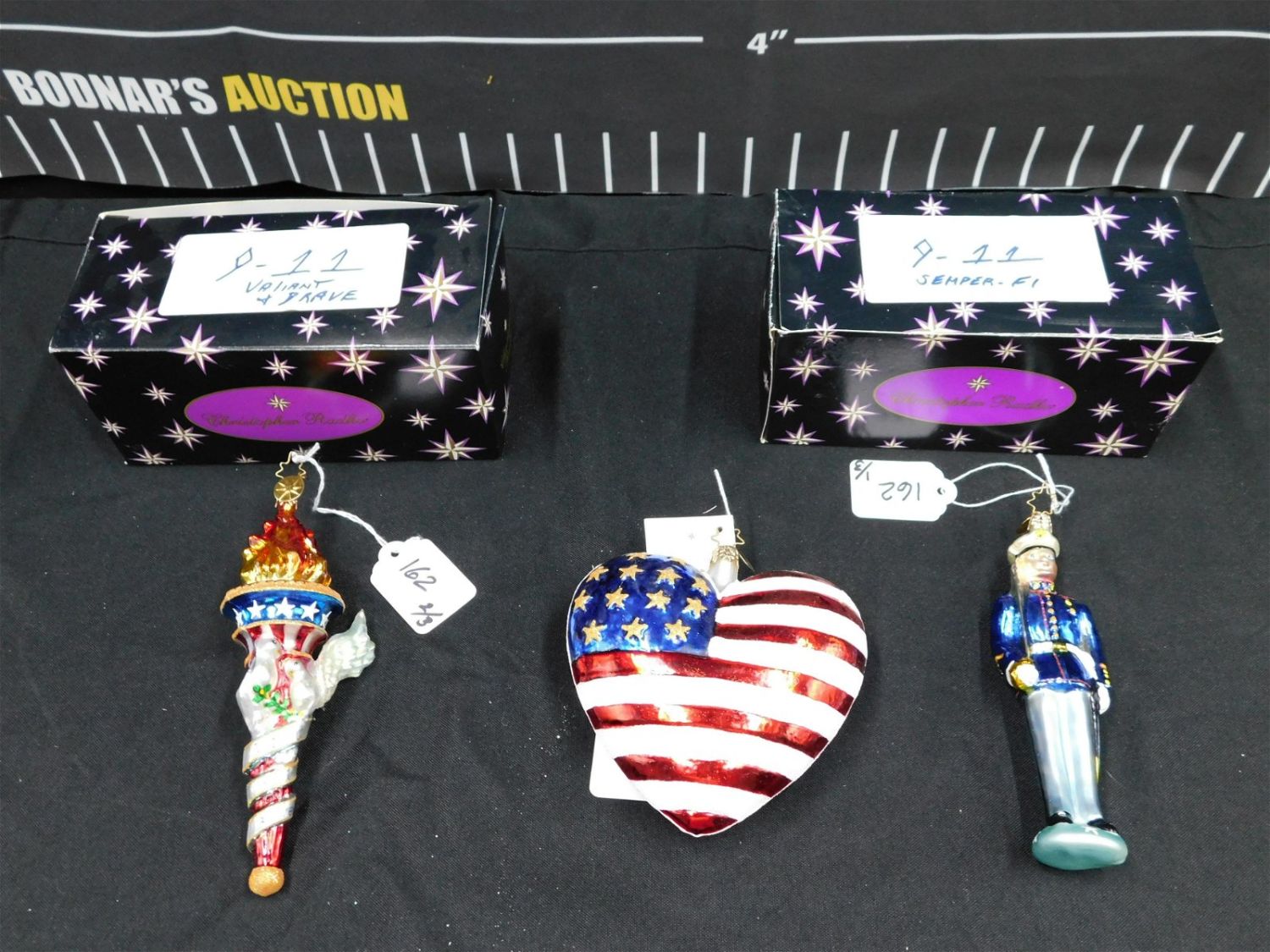 Lot of 3 Hand Blown Christopher Radko Ornaments including Semper Fi, Brave Heart, and 9-11 Valiant and Brave – Feather is not attached – Will need to be reglued. 2 Comes in Boxes. All invoices must be paid within 24 hours of the sale. This auction is Local Pick Up, Shipping with Liveauctioneers Live Ship or with the Local UPS Store in Monmouth Junction, NJ. Local pickups are at our Monmouth Junction location on Friday, Saturday and Monday ONLY! All pickups are by appointment only. Any condition issues will be listed in the description. Please read the terms for full information.
