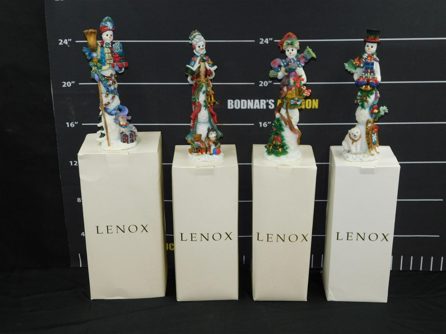 Lot of 4 Lenox Pencil Snowmen Figurines including 2002 – Winter Guest, 2003 – Winter Harmony, 2002- Winter’s Host, and 2001 – Winter Partner. All come in original boxes. All need to be cleaned. Largest measures 12" tall x 3.5". All invoices must be paid within 24 hours of the sale. This auction is Local Pick Up, Shipping with Liveauctioneers Live Ship or with the Local UPS Store in Monmouth Junction, NJ. Local pickups are at our Monmouth Junction location on Friday, Saturday and Monday ONLY! All pickups are by appointment only. Any condition issues will be listed in the description. Please read the terms for full information.