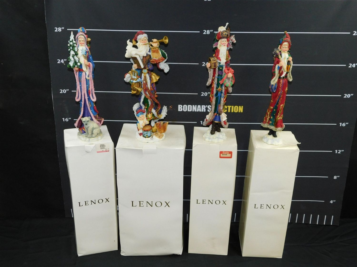 Lot of 4 Lenox Pencil Santa Figurines including 2000 – The Snow King, 2003 – Holiday Melodies, 1998 – Christmas King, and 1995 Santa . All come in original boxes. All need to be cleaned. Largest measures 14" tall x 3". All invoices must be paid within 24 hours of the sale. This auction is Local Pick Up, Shipping with Liveauctioneers Live Ship or with the Local UPS Store in Monmouth Junction, NJ. Local pickups are at our Monmouth Junction location on Friday, Saturday and Monday ONLY! All pickups are by appointment only. Any condition issues will be listed in the description. Please read the terms for full information.