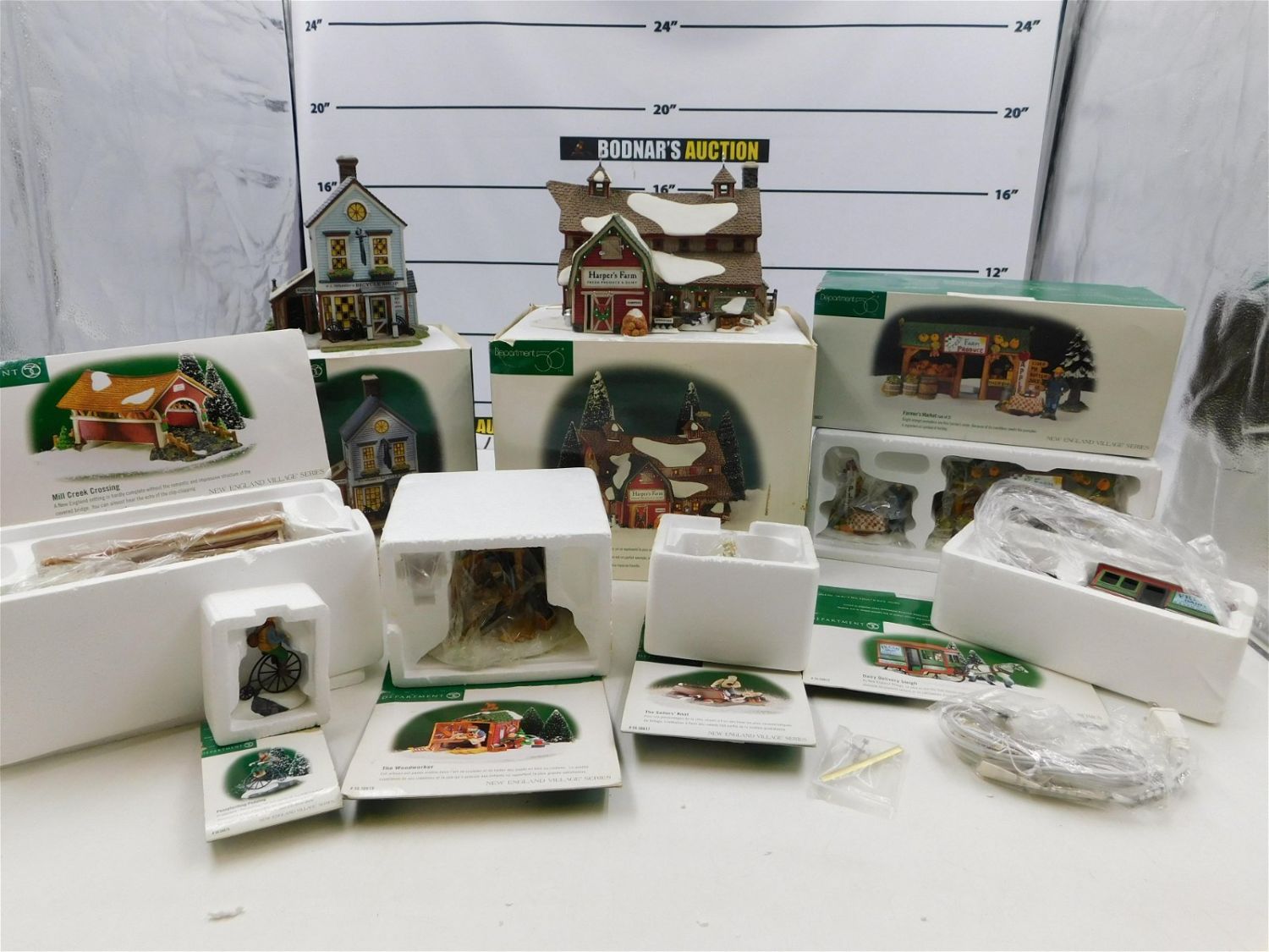 Lot of 8 Dept. 56 New England Village Series including Harper’s Farm – Chip on Roof and broken door, PL Wheeler’s Bicycle Shop, The Woodworker, The Sailor’s Knot, Mill Creek Crossing, Farmer’s Market, and Dairy Delivery Sleigh. Comes in Original Packaging. All invoices must be paid within 24 hours of the sale. This auction is Local Pick Up, Shipping with Liveauctioneers Live Ship or with the Local UPS Store in Monmouth Junction, NJ. Local pickups are at our Monmouth Junction location on Friday, Saturday and Monday ONLY! All pickups are by appointment only. Any condition issues will be listed in the description. Please read the terms for full information.