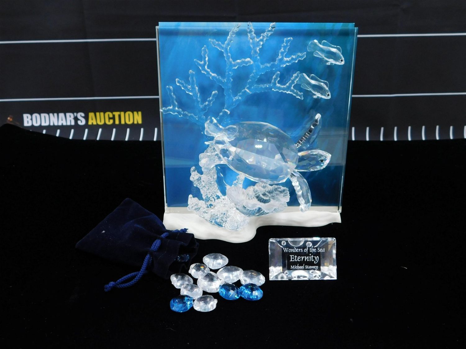Swarovski Wonders of the Sea Eternity Turtle Crystal Figurine including Bag of Crystal Shells, and Title Plaque. Measures 8" x 8". All invoices must be paid within 24 hours of the sale. This auction is Local Pick Up, Shipping with Liveauctioneers Live Ship or with the Local UPS Store in Monmouth Junction, NJ. Local pickups are at our Monmouth Junction location on Friday, Saturday and Monday ONLY! All pickups are by appointment only. Any condition issues will be listed in the description. Please read the terms for full information.
