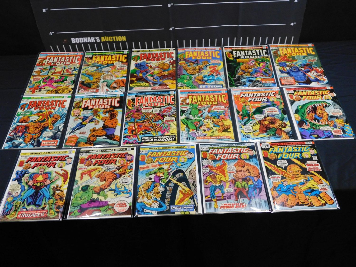 Lot of 17 Bronze Age Fantastic Four Comics including Issues #140-147, 152, 156, 160, 161, 164, and 166-169. Please read the terms and conditions. This sale will be broadcast live on sale day with full descriptions of each lot being sold. All items MUST be paid for within 24 HOURS of the sale. Anyone who has not paid within 24 hours will have a dispute opened against them and will not be able to bid at future sales. If you need your items shipped, we will send your items to the UPS store in Monmouth Junction, NJ . They will pack it and ship it to you and you will pay them separately and directly. Please call them to get a quote before bidding. Their phone number is 732-230-3551. If you are picking your items up you must contact us NO LATER than 24 hours after the sale to schedule an appointment to pick up. Pick up dates are Thursday, Friday, Saturday, and Monday ONLY, and are BY APPOINTMENT ONLY!! After Monday, if you have not picked up your items, they will be disposed of.