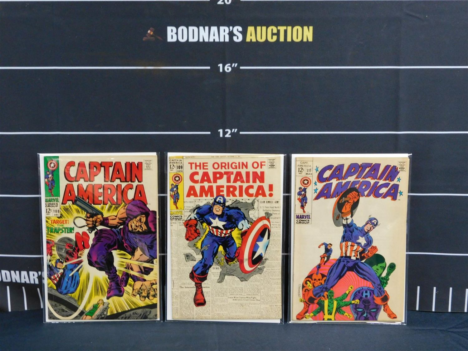 Lot of 3 Silver Age Captain America Comics including Issues #108, 109, and 111. Please read the terms and conditions. This sale will be broadcast live on sale day with full descriptions of each lot being sold. All items MUST be paid for within 24 HOURS of the sale. Anyone who has not paid within 24 hours will have a dispute opened against them and will not be able to bid at future sales. If you need your items shipped, we will send your items to the UPS store in Monmouth Junction, NJ . They will pack it and ship it to you and you will pay them separately and directly. Please call them to get a quote before bidding. Their phone number is 732-230-3551. If you are picking your items up you must contact us NO LATER than 24 hours after the sale to schedule an appointment to pick up. Pick up dates are Thursday, Friday, Saturday, and Monday ONLY, and are BY APPOINTMENT ONLY!! After Monday, if you have not picked up your items, they will be disposed of.
