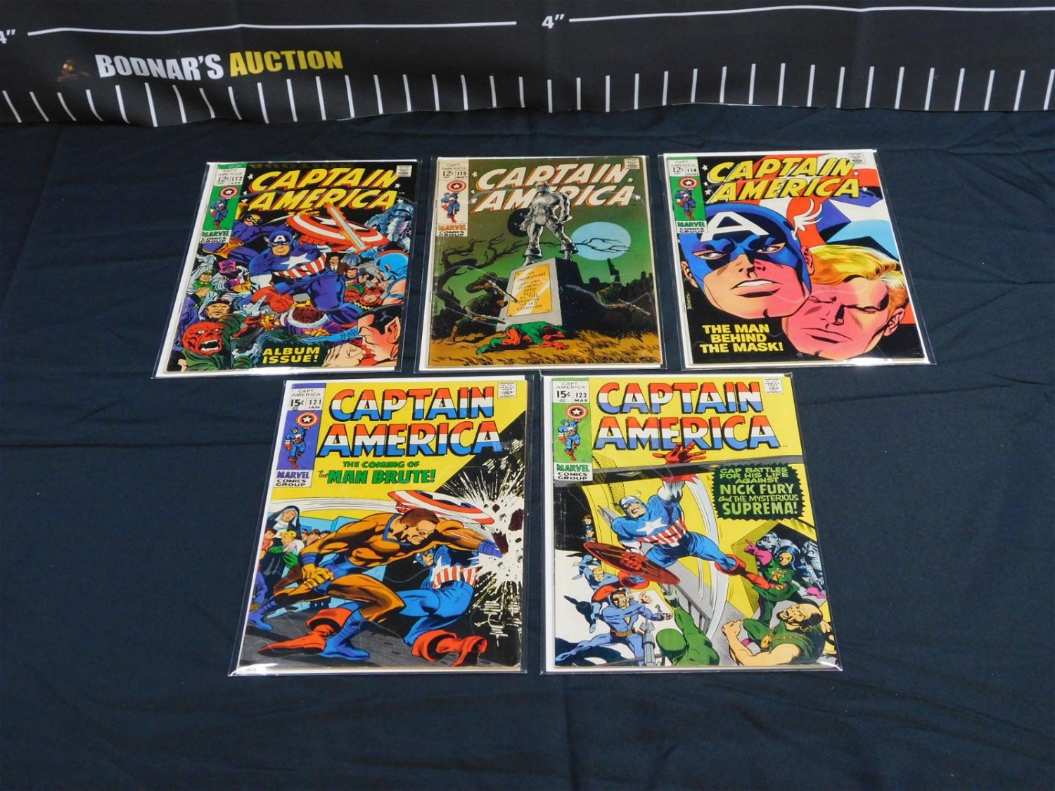 Lot of 5 Silver Age Captain America Comics including Issues #112-114, 121 and 123. Please read the terms and conditions. This sale will be broadcast live on sale day with full descriptions of each lot being sold. All items MUST be paid for within 24 HOURS of the sale. Anyone who has not paid within 24 hours will have a dispute opened against them and will not be able to bid at future sales. If you need your items shipped, we will send your items to the UPS store in Monmouth Junction, NJ . They will pack it and ship it to you and you will pay them separately and directly. Please call them to get a quote before bidding. Their phone number is 732-230-3551. If you are picking your items up you must contact us NO LATER than 24 hours after the sale to schedule an appointment to pick up. Pick up dates are Thursday, Friday, Saturday, and Monday ONLY, and are BY APPOINTMENT ONLY!! After Monday, if you have not picked up your items, they will be disposed of.