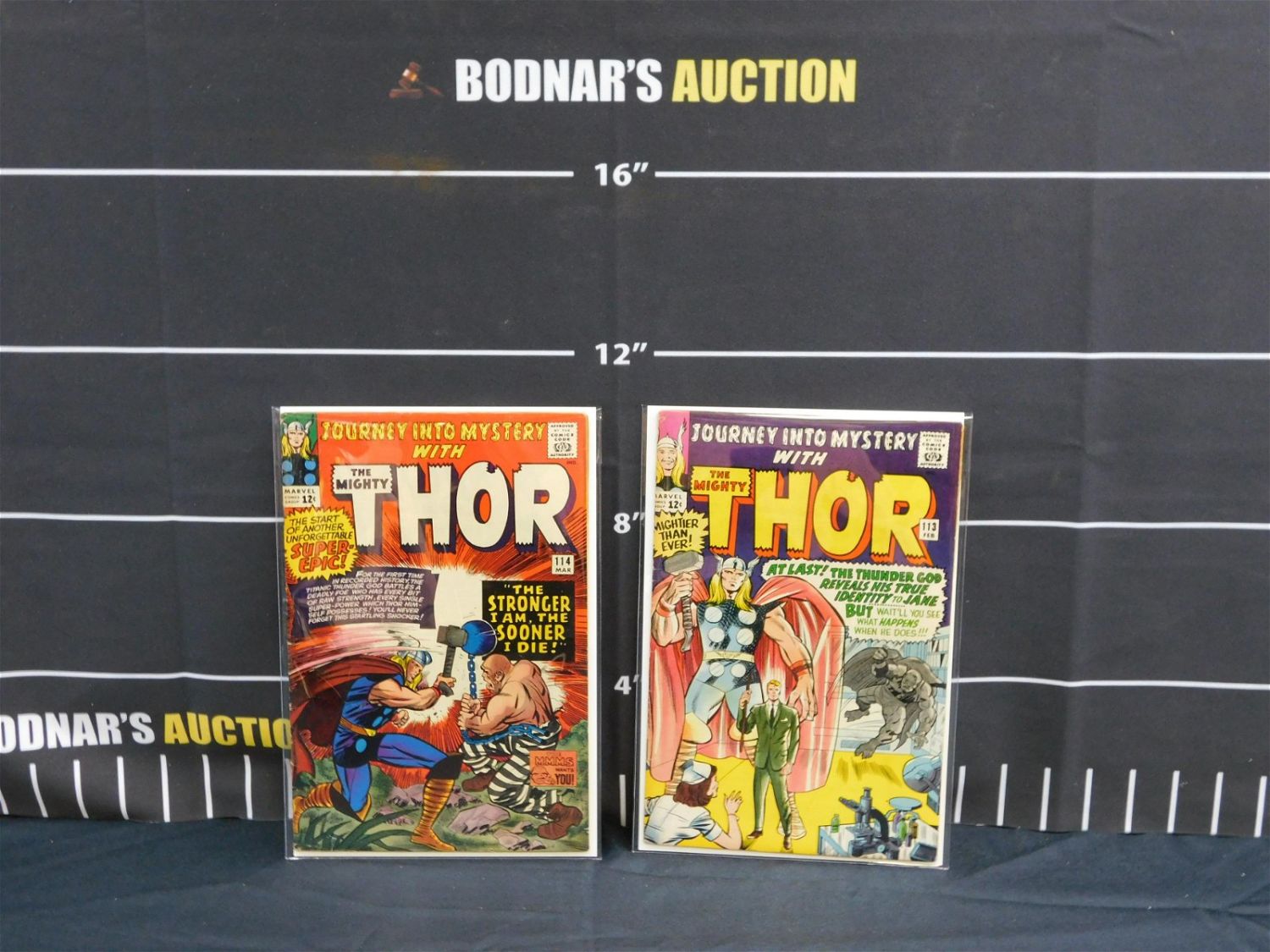 Lot of 2 Silver Age Journey into Mystery Comics – #113 and #114. Issue #113 – Origin of Loki and #114 – 1st appearance of Absorbing Man. Please read the terms and conditions. This sale will be broadcast live on sale day with full descriptions of each lot being sold. All items MUST be paid for within 24 HOURS of the sale. Anyone who has not paid within 24 hours will have a dispute opened against them and will not be able to bid at future sales. If you need your items shipped, we will send your items to the UPS store in Monmouth Junction, NJ . They will pack it and ship it to you and you will pay them separately and directly. Please call them to get a quote before bidding. Their phone number is 732-230-3551. If you are picking your items up you must contact us NO LATER than 24 hours after the sale to schedule an appointment to pick up. Pick up dates are Thursday, Friday, Saturday, and Monday ONLY, and are BY APPOINTMENT ONLY!! After Monday, if you have not picked up your items, they will be disposed of.