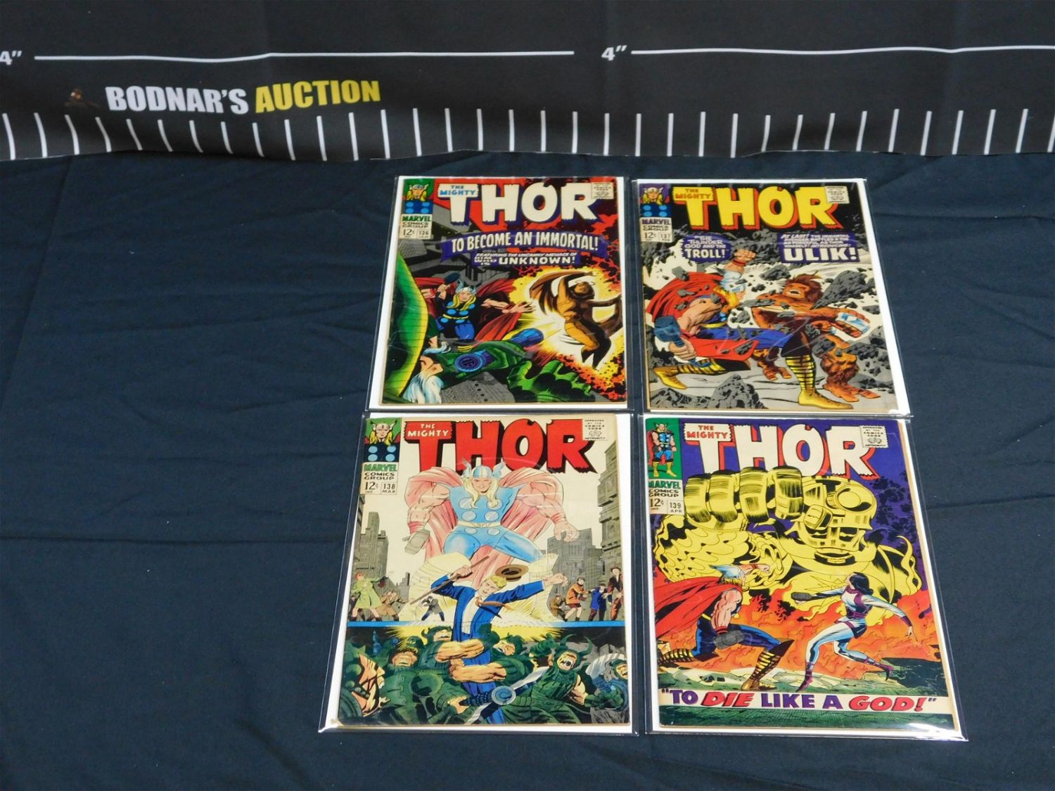 Lot of 4 Silver Age The Mighty Thor Comics including Issues #136-139. Please read the terms and conditions. This sale will be broadcast live on sale day with full descriptions of each lot being sold. All items MUST be paid for within 24 HOURS of the sale. Anyone who has not paid within 24 hours will have a dispute opened against them and will not be able to bid at future sales. If you need your items shipped, we will send your items to the UPS store in Monmouth Junction, NJ . They will pack it and ship it to you and you will pay them separately and directly. Please call them to get a quote before bidding. Their phone number is 732-230-3551. If you are picking your items up you must contact us NO LATER than 24 hours after the sale to schedule an appointment to pick up. Pick up dates are Thursday, Friday, Saturday, and Monday ONLY, and are BY APPOINTMENT ONLY!! After Monday, if you have not picked up your items, they will be disposed of.