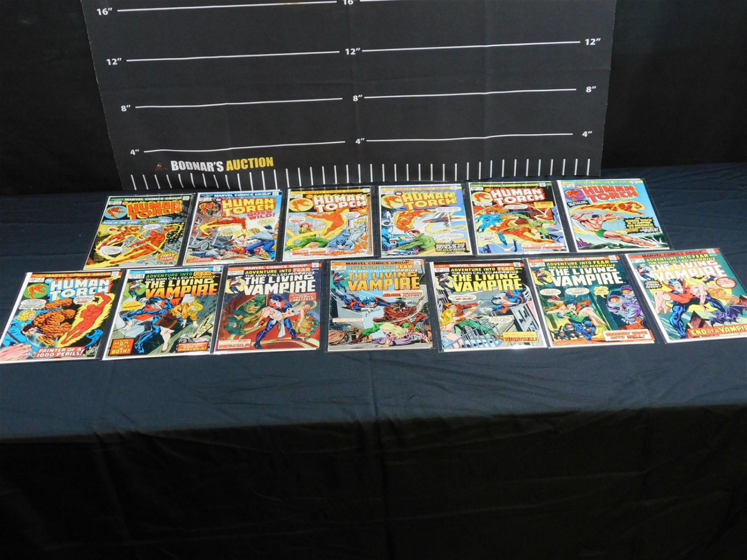 Lot of 13 Marvel Comics from the 1970’s including The Human Torch #1, 2, and 4-8 and Adventure into Fear with Morbius The Living Vampire #20, 21, 24, 27, 28, and 31. Please read the terms and conditions. This sale will be broadcast live on sale day with full descriptions of each lot being sold. All items MUST be paid for within 24 HOURS of the sale. Anyone who has not paid within 24 hours will have a dispute opened against them and will not be able to bid at future sales. If you need your items shipped, we will send your items to the UPS store in Monmouth Junction, NJ . They will pack it and ship it to you and you will pay them separately and directly. Please call them to get a quote before bidding. Their phone number is 732-230-3551. If you are picking your items up you must contact us NO LATER than 24 hours after the sale to schedule an appointment to pick up. Pick up dates are Thursday, Friday, Saturday, and Monday ONLY, and are BY APPOINTMENT ONLY!! After Monday, if you have not picked up your items, they will be disposed of.