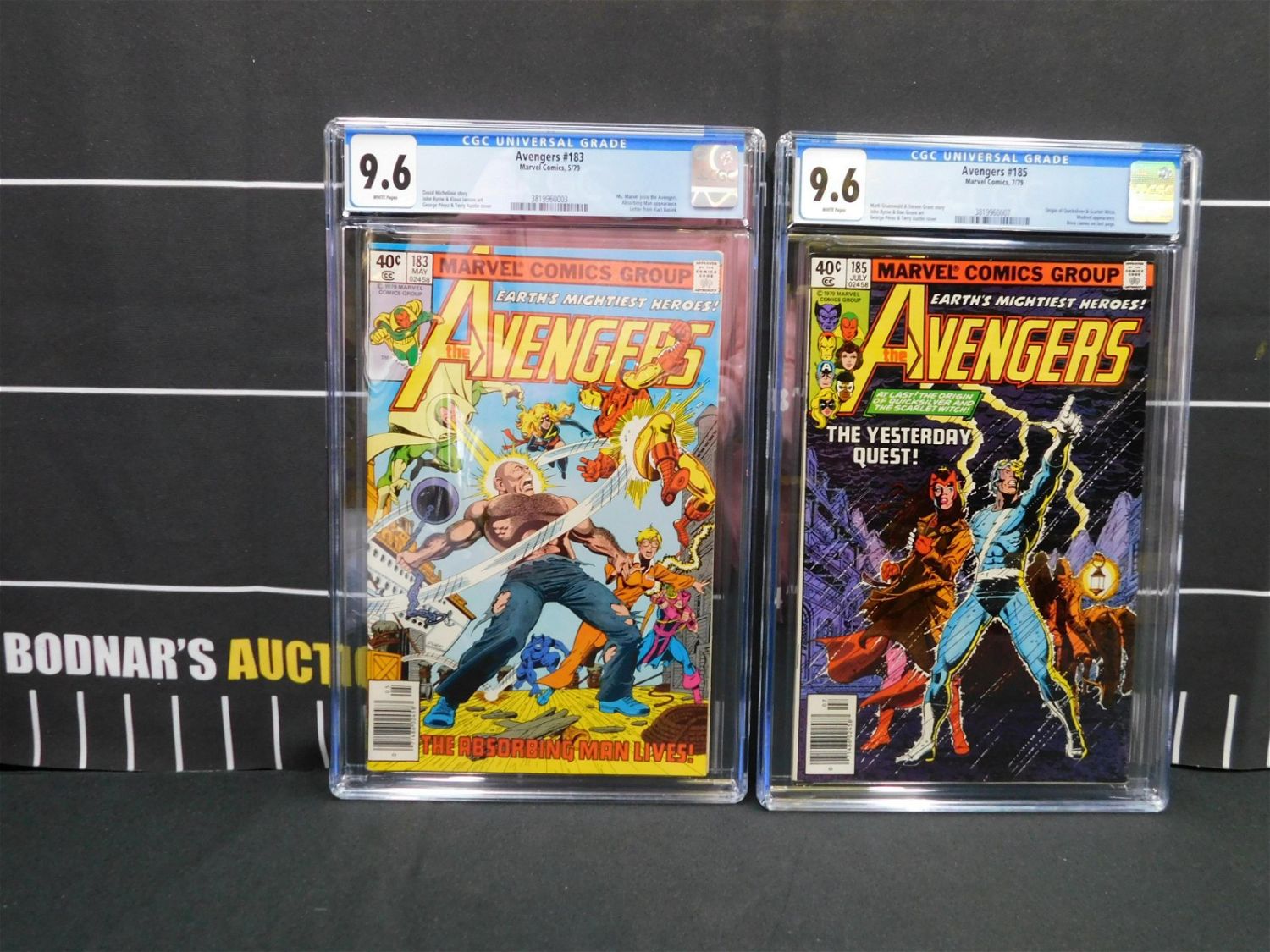 Marvel Avengers Comics #183 and #185 – CGC Graded. Avengers #183 – Graded 9.6 White Pages – Ms. Marvel joins the Avengers – Absorbing Man Appearance. Avengers #181 Graded #9.6 White Pages – Origin of Quicksilver & Scarlet Witch. Modred Appearance. Bova cameo on last page. Please read the terms and conditions. This sale will be broadcast live on sale day with full descriptions of each lot being sold. All items MUST be paid for within 24 HOURS of the sale. Anyone who has not paid within 24 hours will have a dispute opened against them and will not be able to bid at future sales. If you need your items shipped, we will send your items to the UPS store in Monmouth Junction, NJ . They will pack it and ship it to you and you will pay them separately and directly. Please call them to get a quote before bidding. Their phone number is 732-230-3551. If you are picking your items up you must contact us NO LATER than 24 hours after the sale to schedule an appointment to pick up. Pick up dates are Thursday, Friday, Saturday, and Monday ONLY, and are BY APPOINTMENT ONLY!! After Monday, if you have not picked up your items, they will be disposed of.