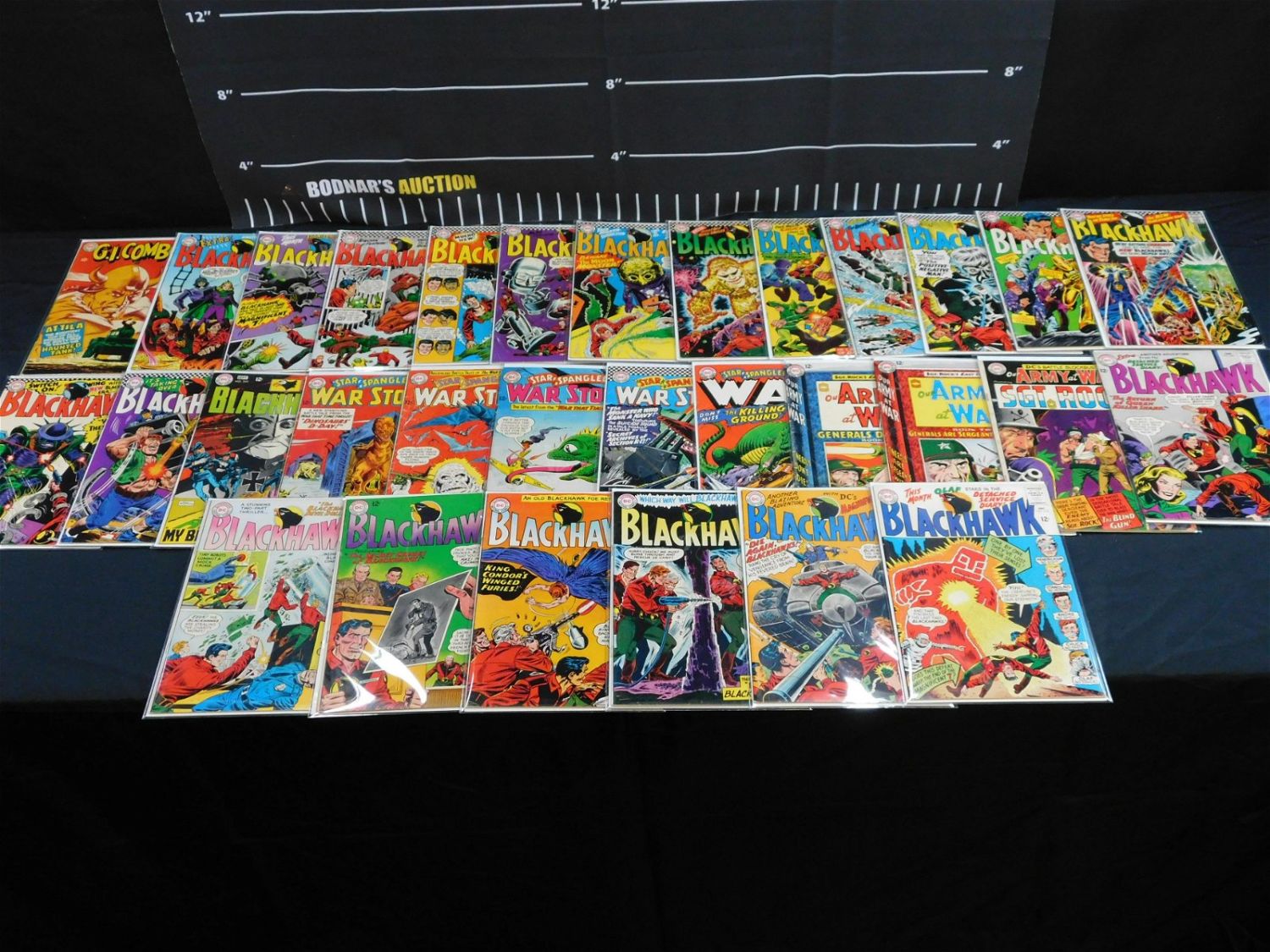 Lot of 31 Silver Age DC War Comics including Blackhawk #204, 207-210, 213, 215-223, 225, 227, 230-232, 234 and 242, GI Combat #130, Our Army at War #147, 148 and 159, and Star Spangled War Stories #109, 111, 118, 127, and 134. Please read the terms and conditions. This sale will be broadcast live on sale day with full descriptions of each lot being sold. All items MUST be paid for within 24 HOURS of the sale. Anyone who has not paid within 24 hours will have a dispute opened against them and will not be able to bid at future sales. If you need your items shipped, we will send your items to the UPS store in Monmouth Junction, NJ . They will pack it and ship it to you and you will pay them separately and directly. Please call them to get a quote before bidding. Their phone number is 732-230-3551. If you are picking your items up you must contact us NO LATER than 24 hours after the sale to schedule an appointment to pick up. Pick up dates are Thursday, Friday, Saturday, and Monday ONLY, and are BY APPOINTMENT ONLY!! After Monday, if you have not picked up your items, they will be disposed of.