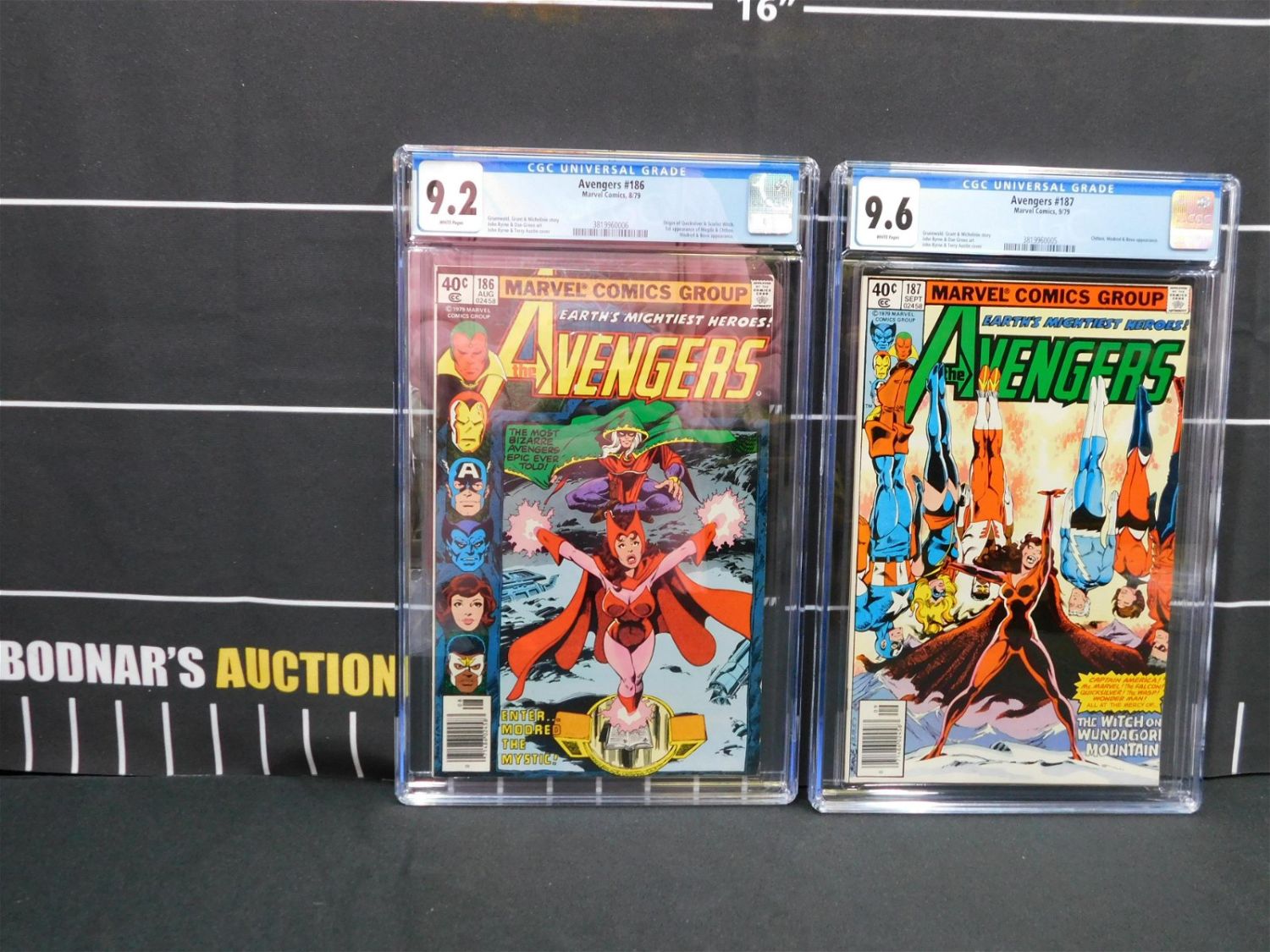 Marvel Avengers Comics #186 and #187 – CGC Graded. Avengers #186 – Graded 9.2 White Pages – Origin of Quicksilver & Scarlet Witch. 1st Appearance of Magda & Chthon. Modred & Bova Appearance. Avengers #187 Graded #9.6 White Pages – Chthon, Modred & Bova Appearance. Please read the terms and conditions. This sale will be broadcast live on sale day with full descriptions of each lot being sold. All items MUST be paid for within 24 HOURS of the sale. Anyone who has not paid within 24 hours will have a dispute opened against them and will not be able to bid at future sales. If you need your items shipped, we will send your items to the UPS store in Monmouth Junction, NJ . They will pack it and ship it to you and you will pay them separately and directly. Please call them to get a quote before bidding. Their phone number is 732-230-3551. If you are picking your items up you must contact us NO LATER than 24 hours after the sale to schedule an appointment to pick up. Pick up dates are Thursday, Friday, Saturday, and Monday ONLY, and are BY APPOINTMENT ONLY!! After Monday, if you have not picked up your items, they will be disposed of.