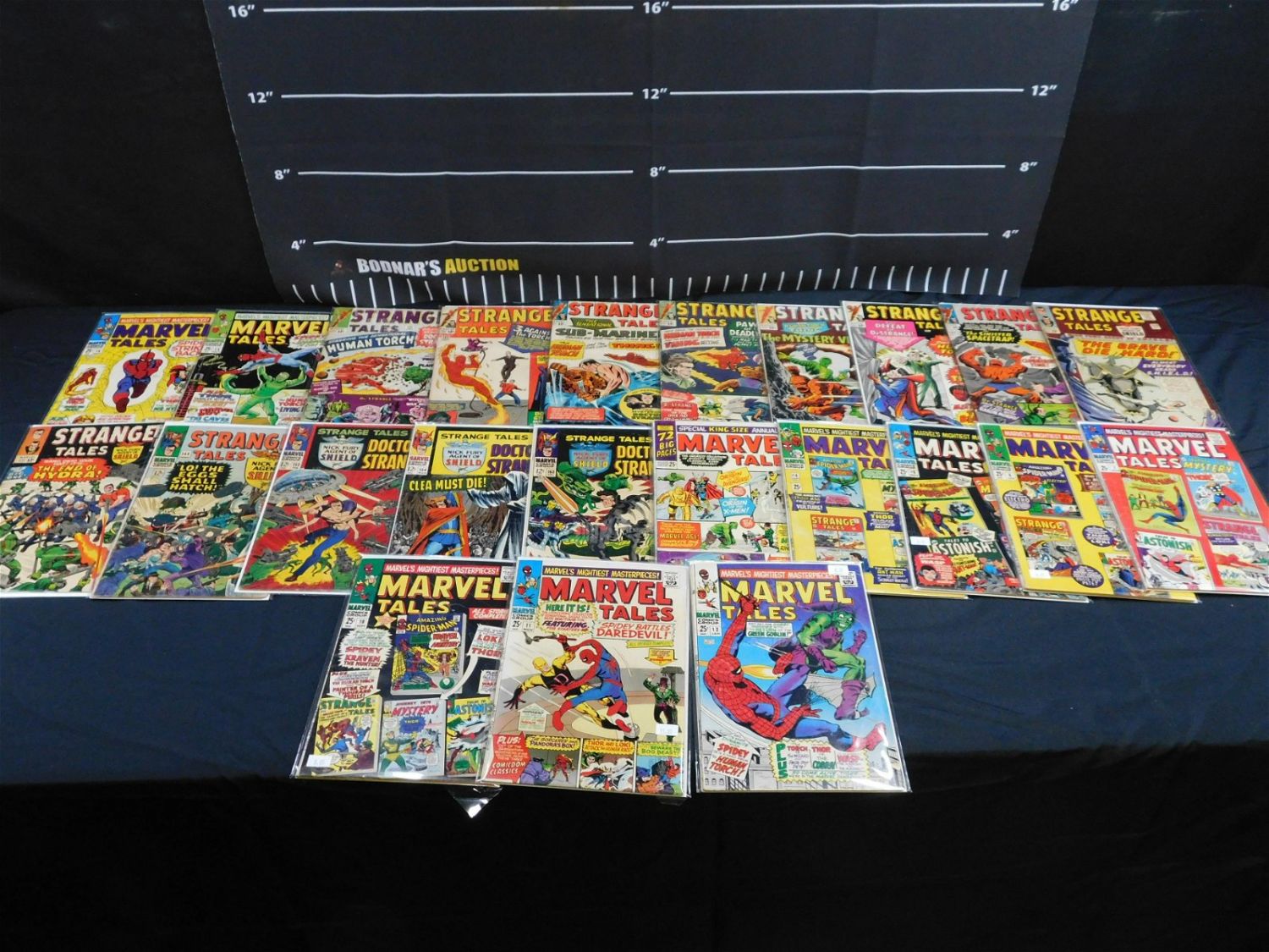 Lot of 23 Marvel Tales and Strange Tales Comics including Marvel Tales Annual #2, and Issues #4-7, 10-12, 14, and 15 and Strange Tales #121, 122, 125-127, 130, 132, 139, 140, 145, 153, 154, and 163. Please read the terms and conditions. This sale will be broadcast live on sale day with full descriptions of each lot being sold. All items MUST be paid for within 24 HOURS of the sale. Anyone who has not paid within 24 hours will have a dispute opened against them and will not be able to bid at future sales. If you need your items shipped, we will send your items to the UPS store in Monmouth Junction, NJ . They will pack it and ship it to you and you will pay them separately and directly. Please call them to get a quote before bidding. Their phone number is 732-230-3551. If you are picking your items up you must contact us NO LATER than 24 hours after the sale to schedule an appointment to pick up. Pick up dates are Thursday, Friday, Saturday, and Monday ONLY, and are BY APPOINTMENT ONLY!! After Monday, if you have not picked up your items, they will be disposed of.