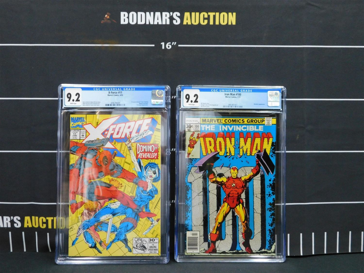 Lot of 2 Marvel CGC Graded Comics including Iron Man #100 – Graded 9.2 White Pages – Mandarin Appearance. X-Force #11 – Graded 9.2 White Pages – 1st Appearance of "Real" Domino Deadpool Appearance. Please read the terms and conditions. This sale will be broadcast live on sale day with full descriptions of each lot being sold. All items MUST be paid for within 24 HOURS of the sale. Anyone who has not paid within 24 hours will have a dispute opened against them and will not be able to bid at future sales. If you need your items shipped, we will send your items to the UPS store in Monmouth Junction, NJ . They will pack it and ship it to you and you will pay them separately and directly. Please call them to get a quote before bidding. Their phone number is 732-230-3551. If you are picking your items up you must contact us NO LATER than 24 hours after the sale to schedule an appointment to pick up. Pick up dates are Thursday, Friday, Saturday, and Monday ONLY, and are BY APPOINTMENT ONLY!! After Monday, if you have not picked up your items, they will be disposed of.