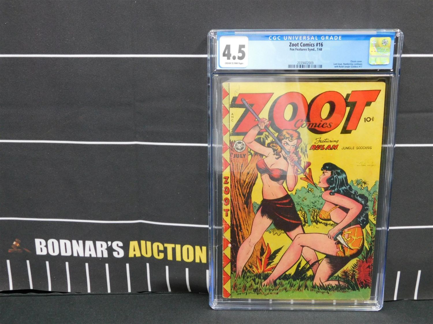 Zoot Comics #16 – CGC 4.5 – Cream to Pink Pages. Classic Cover. Last Issue. Please read the terms and conditions. This sale will be broadcast live on sale day with full descriptions of each lot being sold. All items MUST be paid for within 24 HOURS of the sale. Anyone who has not paid within 24 hours will have a dispute opened against them and will not be able to bid at future sales. If you need your items shipped, we will send your items to the UPS store in Monmouth Junction, NJ . They will pack it and ship it to you and you will pay them separately and directly. Please call them to get a quote before bidding. Their phone number is 732-230-3551. If you are picking your items up you must contact us NO LATER than 24 hours after the sale to schedule an appointment to pick up. Pick up dates are Thursday, Friday, Saturday, and Monday ONLY, and are BY APPOINTMENT ONLY!! After Monday, if you have not picked up your items, they will be disposed of.