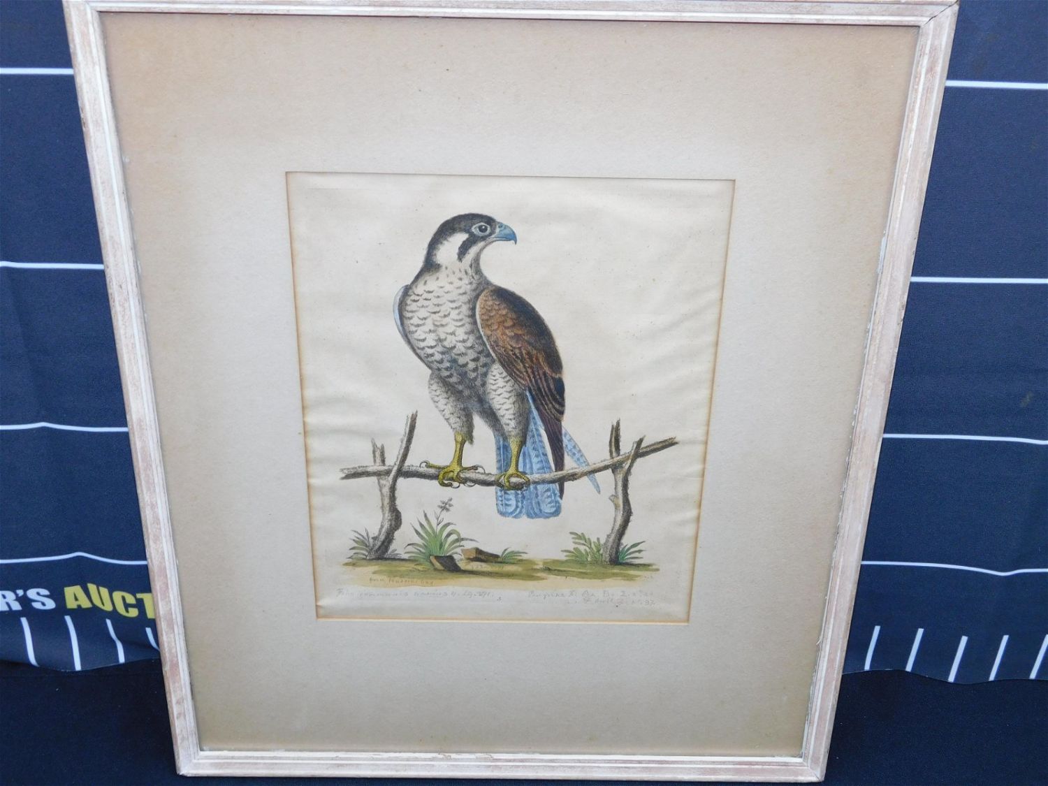 Framed 18th/19th Century hand-colored engraving depicting an eagle/falcon marked in image E Edwards, from Hudson Bay, with pencil notations. Frame measures approx. 18" tall x 15" wide. Please read the terms and conditions. This sale will be broadcast live on sale day with full descriptions of each lot being sold. All items MUST be paid for within 24 HOURS of the sale. Anyone who has not paid within 24 hours will have a dispute opened against them and will not be able to bid at future sales. All items in this sale are local pick up only, or shipping via UPS store in Monmouth Junction, NJ. If you need your items shipped, we will send your items to the UPS store in Monmouth Junction, NJ . They will pack it and ship it to you and you will pay them separately and directly. Please call them to get a quote before bidding. Their phone number is 732-230-3551. If you are picking your items up you must contact us NO LATER than 24 hours after the sale to schedule an appointment to pick up. Pick up dates are Thursday, Friday, Saturday, and Monday ONLY, and are BY APPOINTMENT ONLY!! After Monday, if you have not picked up your items, they will be disposed of.