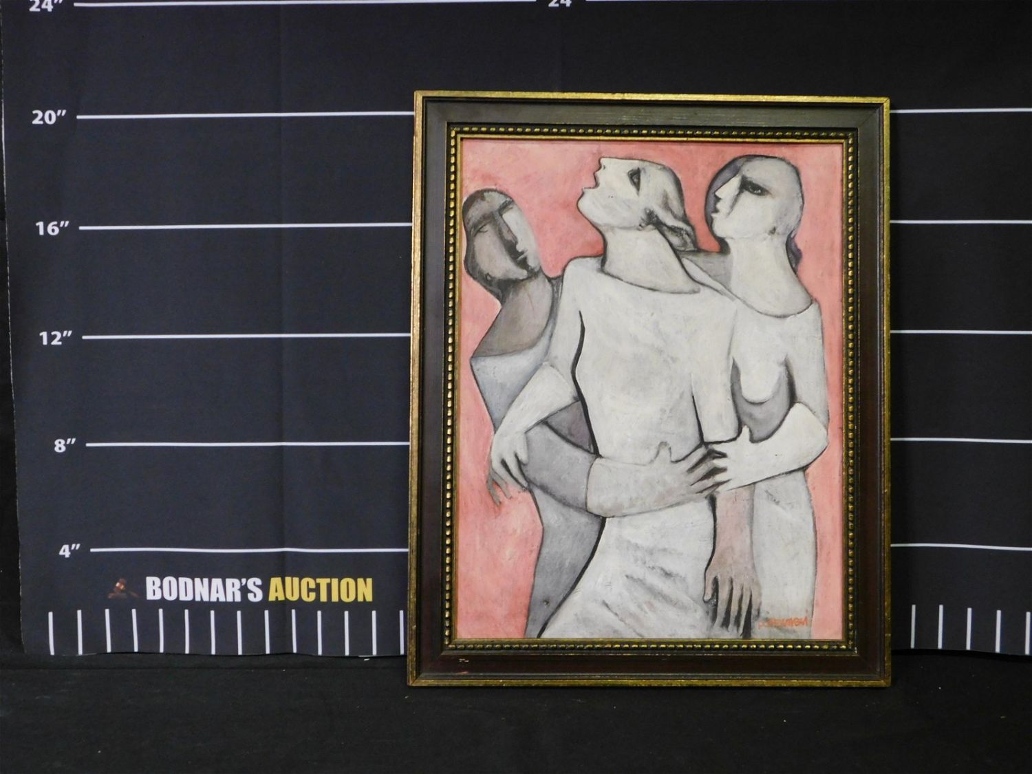 Oil on board by Alessio Paternesi (Italian, B. 1937) depicting an abstract of 3 lovers embracing signed lower right. Measures 21 inches tall by 17 inches long. All invoices must be paid within 24 hours of the sale. This auction is Local Pick Up, Shipping with Liveauctioneers Live Ship or with the Local UPS Store in Monmouth Junction, NJ. Local pickups are at our Monmouth Junction location on Thursday, Friday, Saturday and Monday ONLY! All pickups are by appointment only. Any condition issues will be listed in the description. Please read the terms for full information.